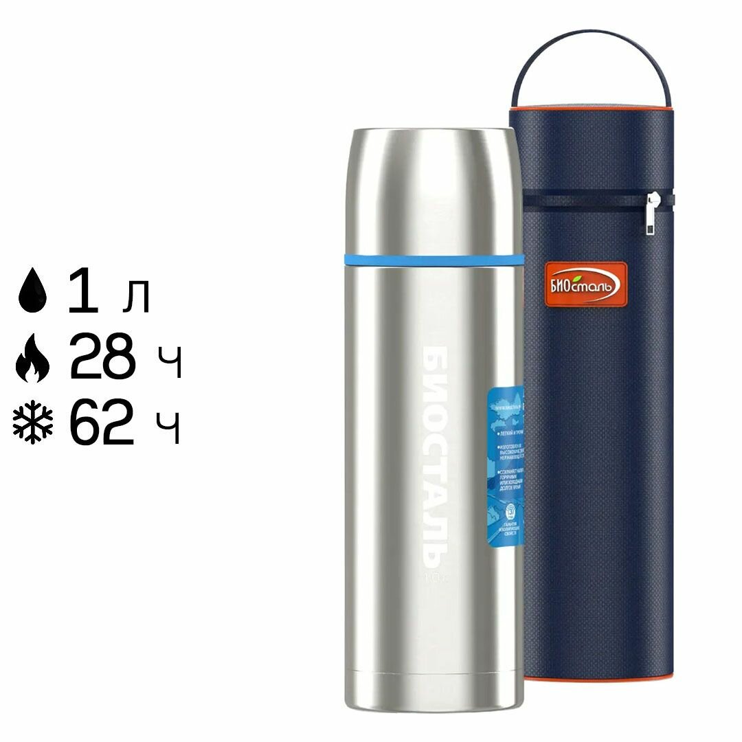 Термос Биосталь Biostal для чая и кофе с термочехлом, 1 л., стальной, NBP-1000-1