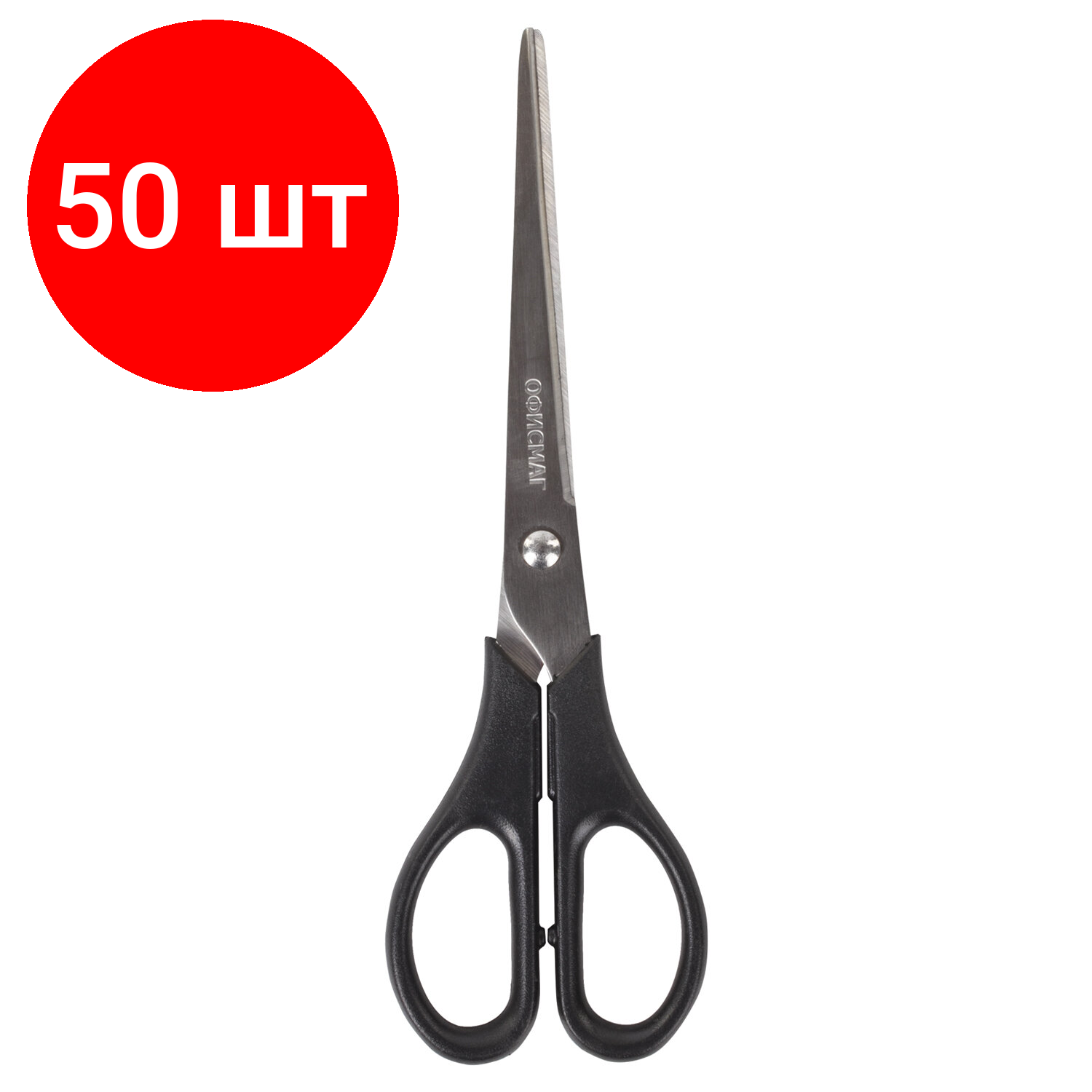 Купить Комплект 50 шт, Ножницы офисмаг "Standard" 190 мм, классической формы, черные, 237100