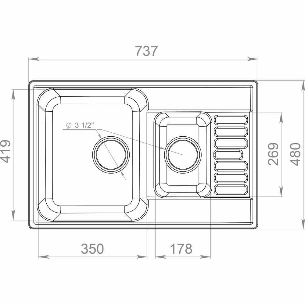 | Диаметр сливного отверстия | 3 1/2 " |