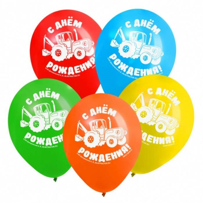 Набор для праздника "С Днем рождения", гирлянда, свеча, шарики 5 штук, Синий трактор