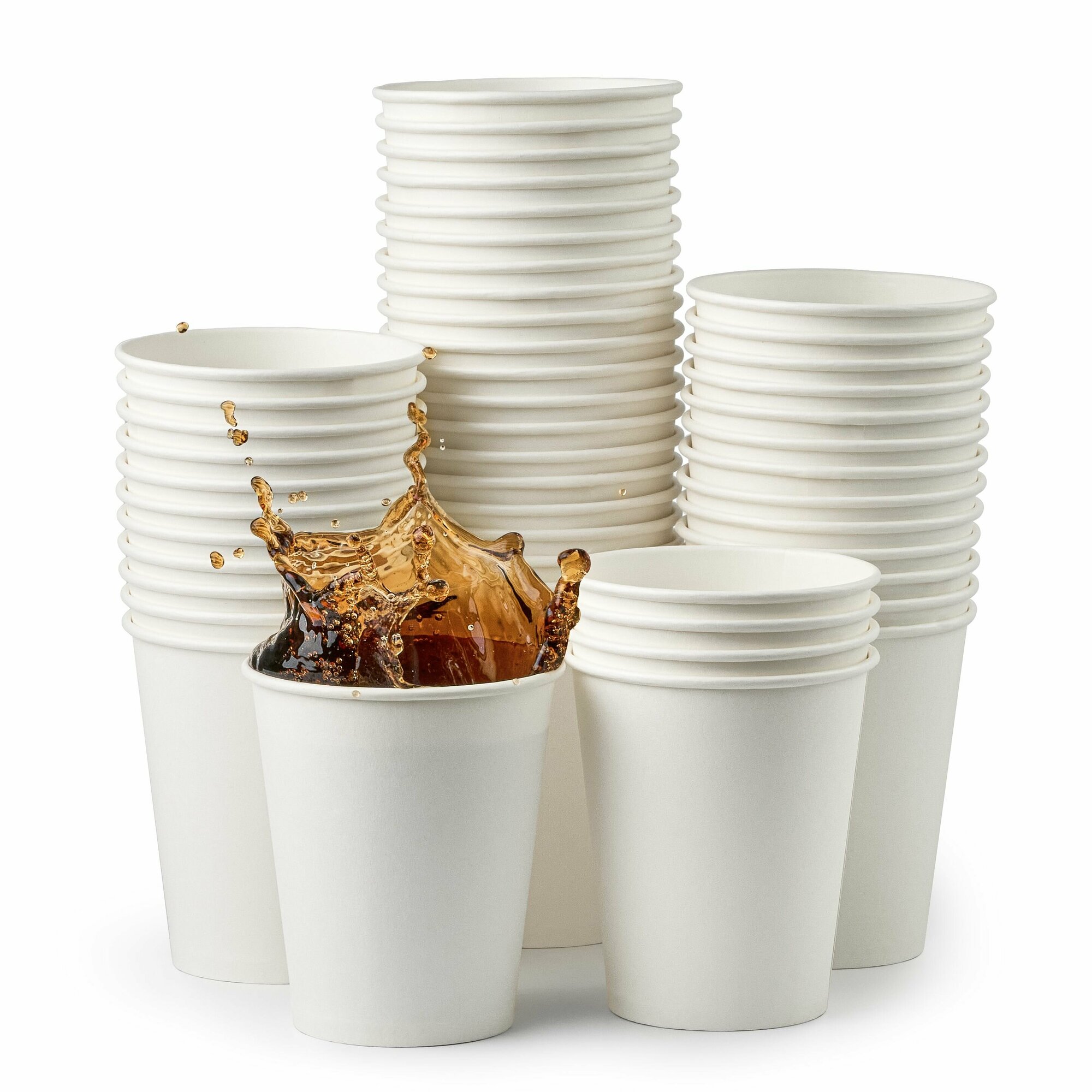Купить Набор бумажных стаканов, объем 250 мл, 50 шт, Белый, однослойные: для кофе, чая, холодных и горячих напитков