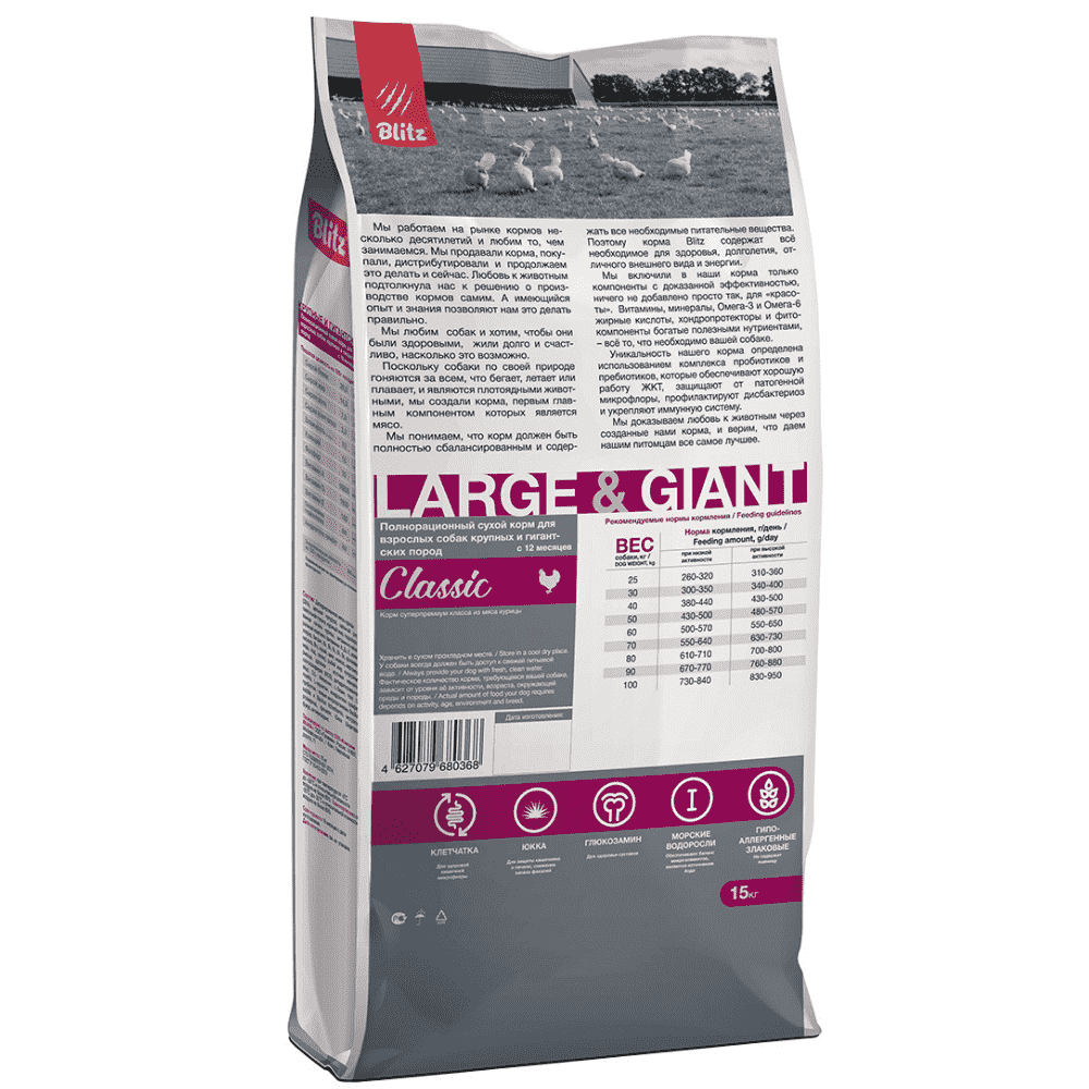 Корм Blitz Classic Puppy Large & Giant для щенков крупных пород, 15 кг