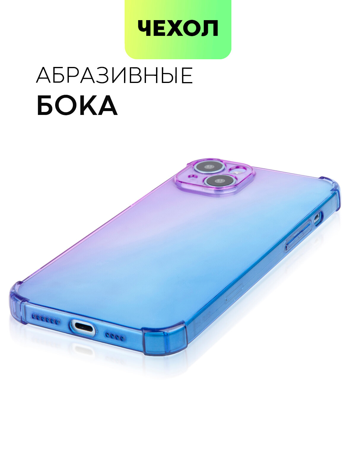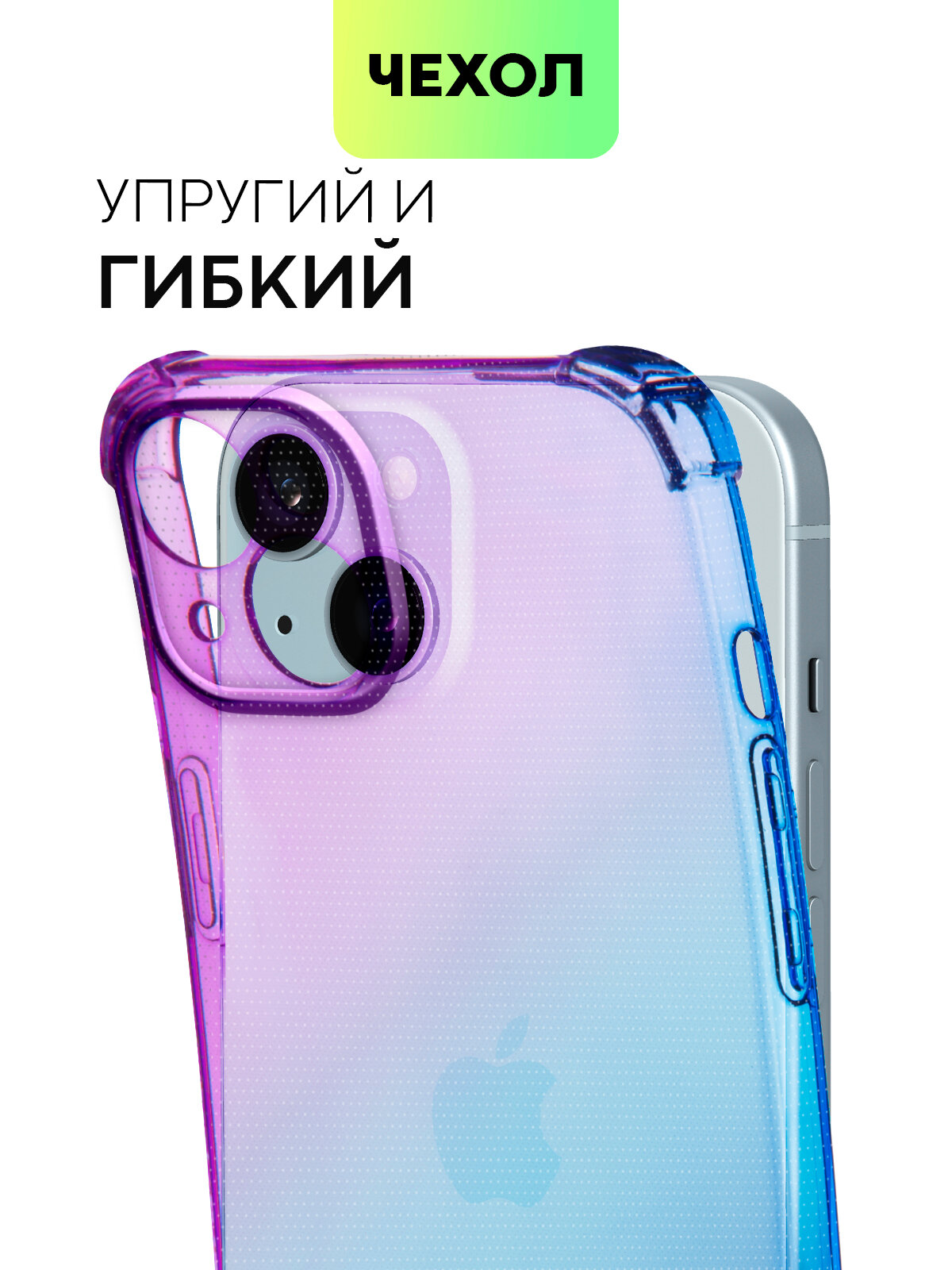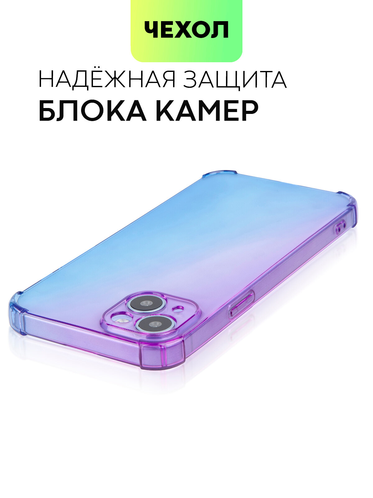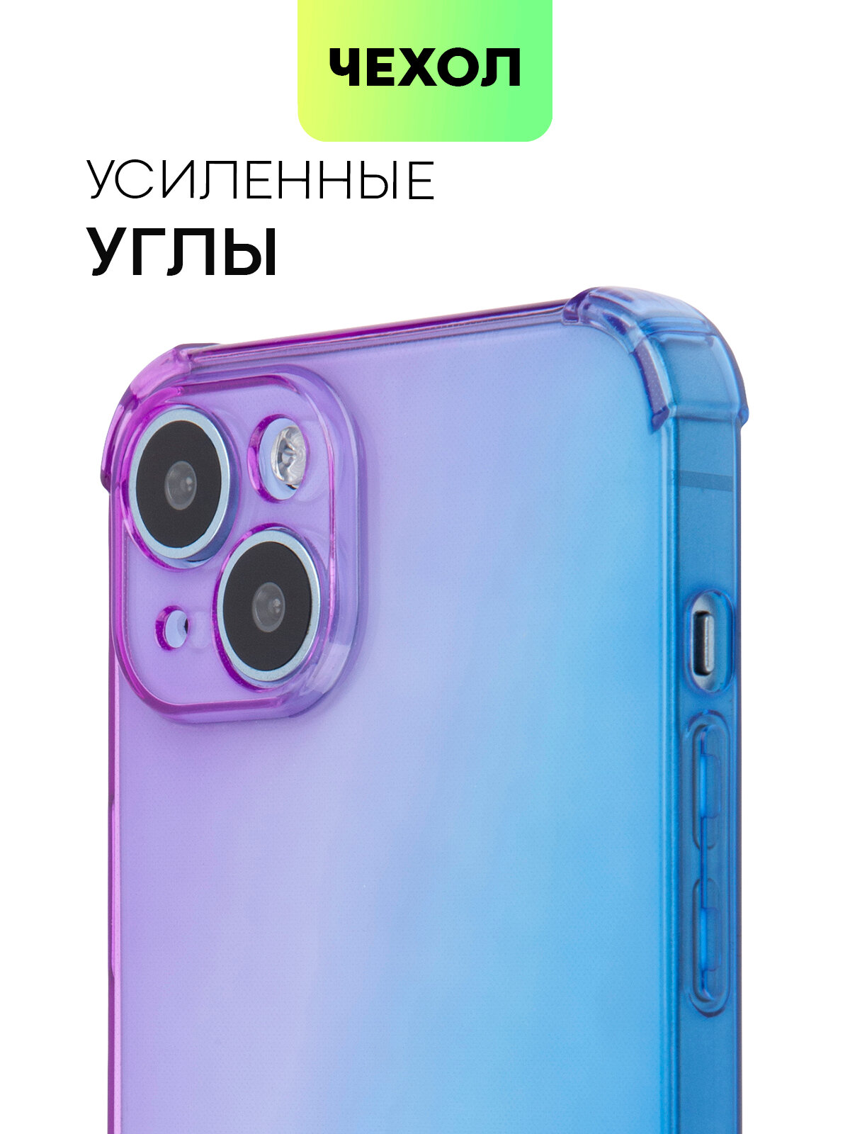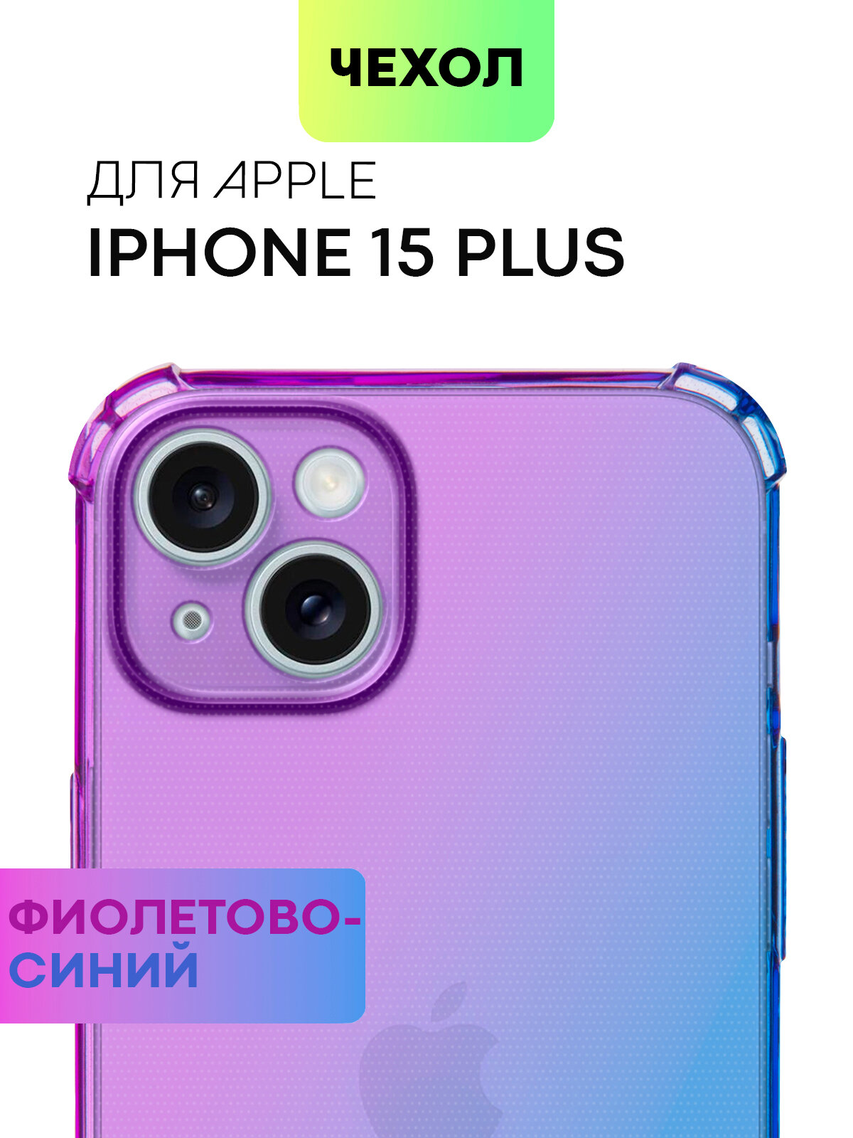 Купить Чехол для Apple iPhone 15 Plus (Эпл Айфон 15 Плюс) противоударный силиконовый, усиленный, защитой камер, чехол BROSCORP прозрачный фиолетово-синий