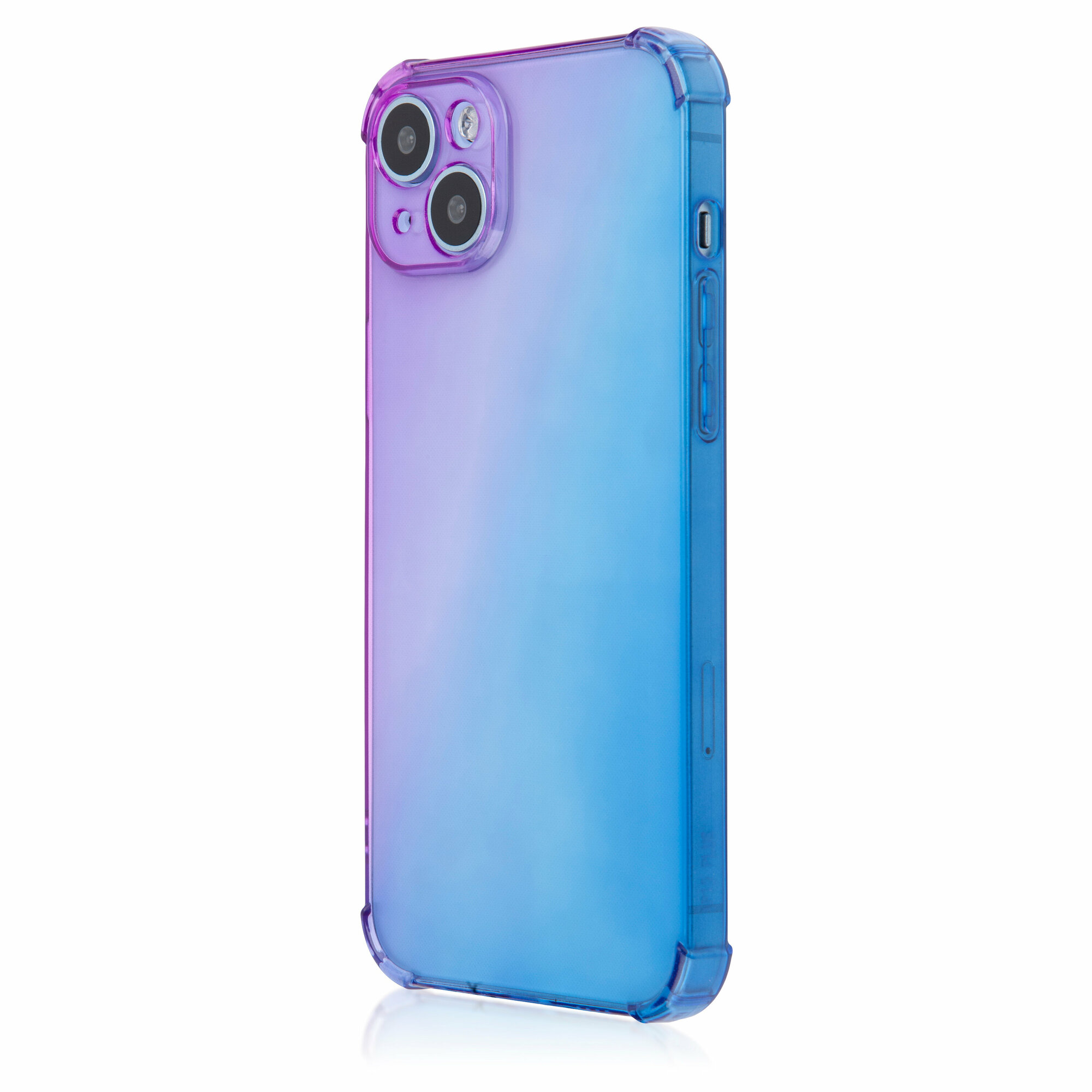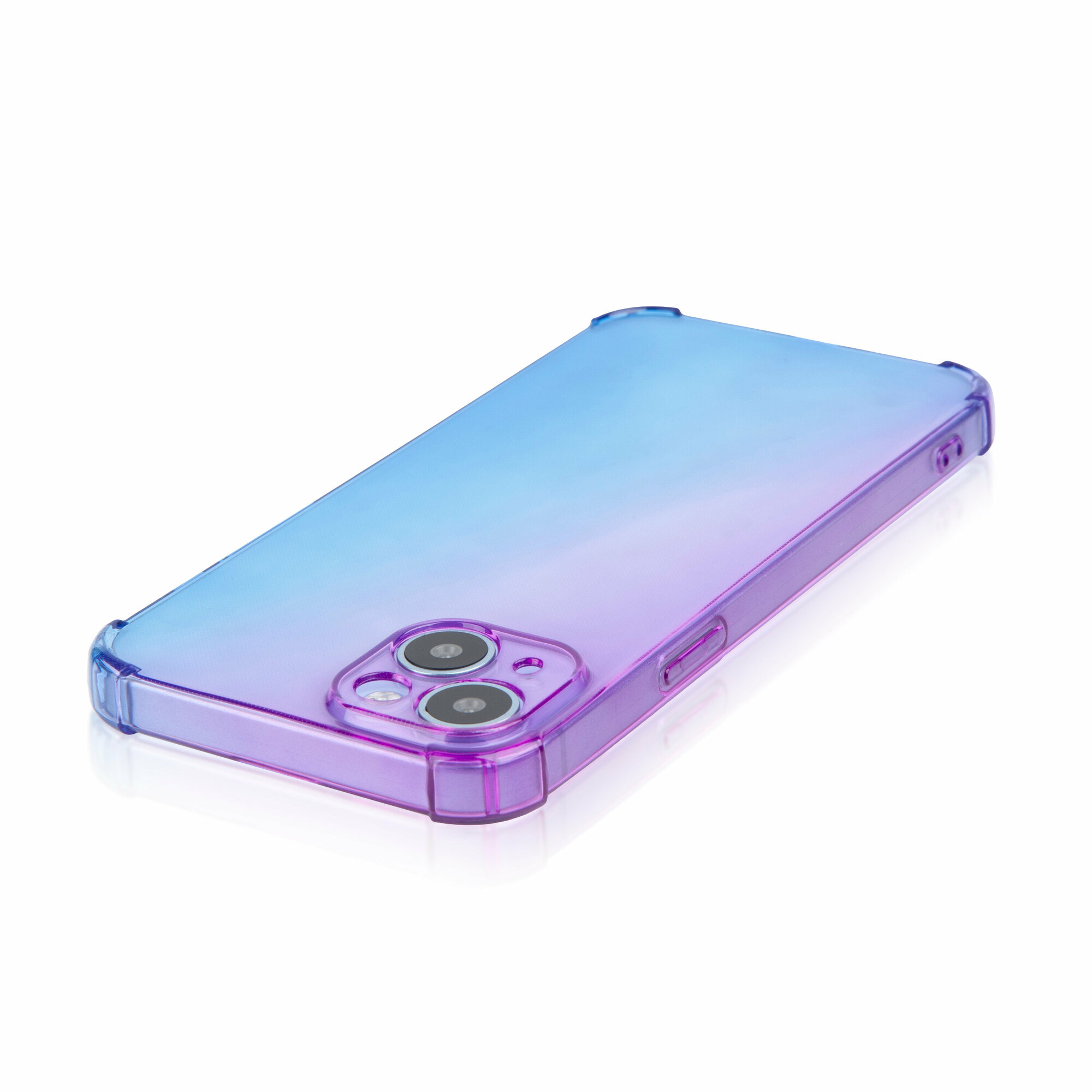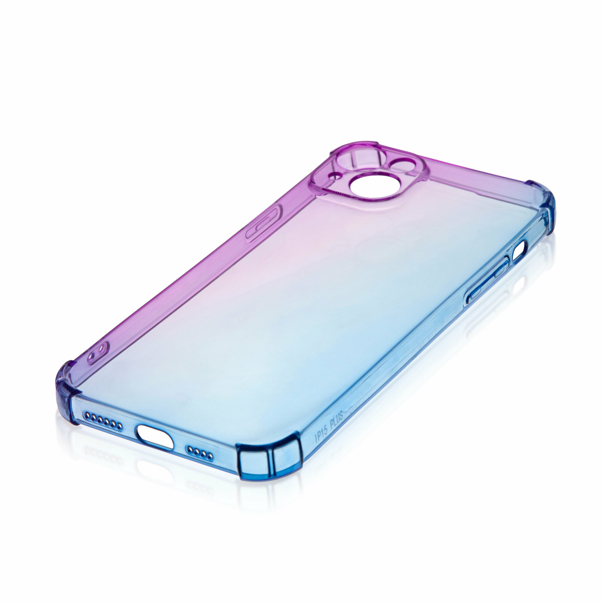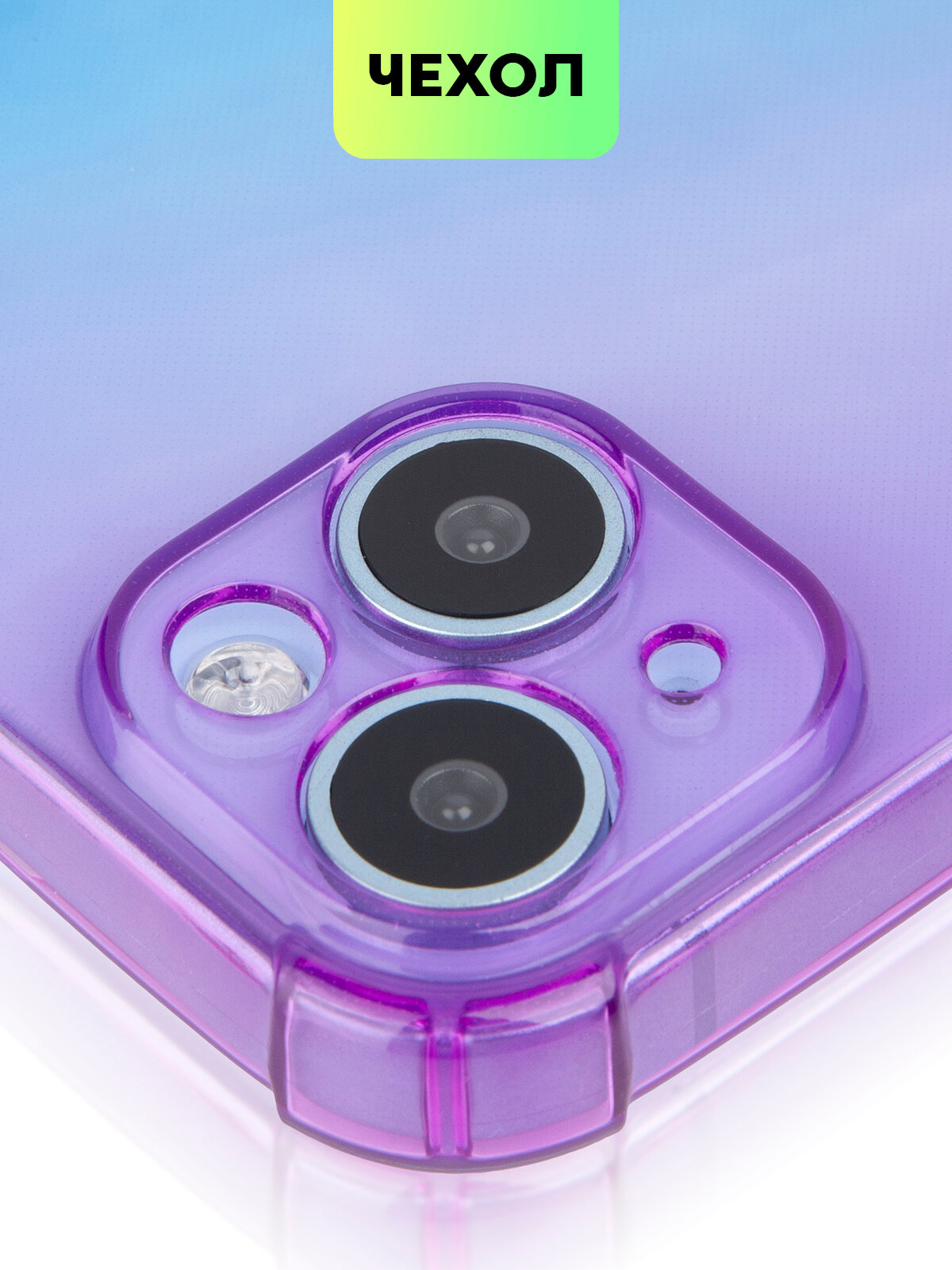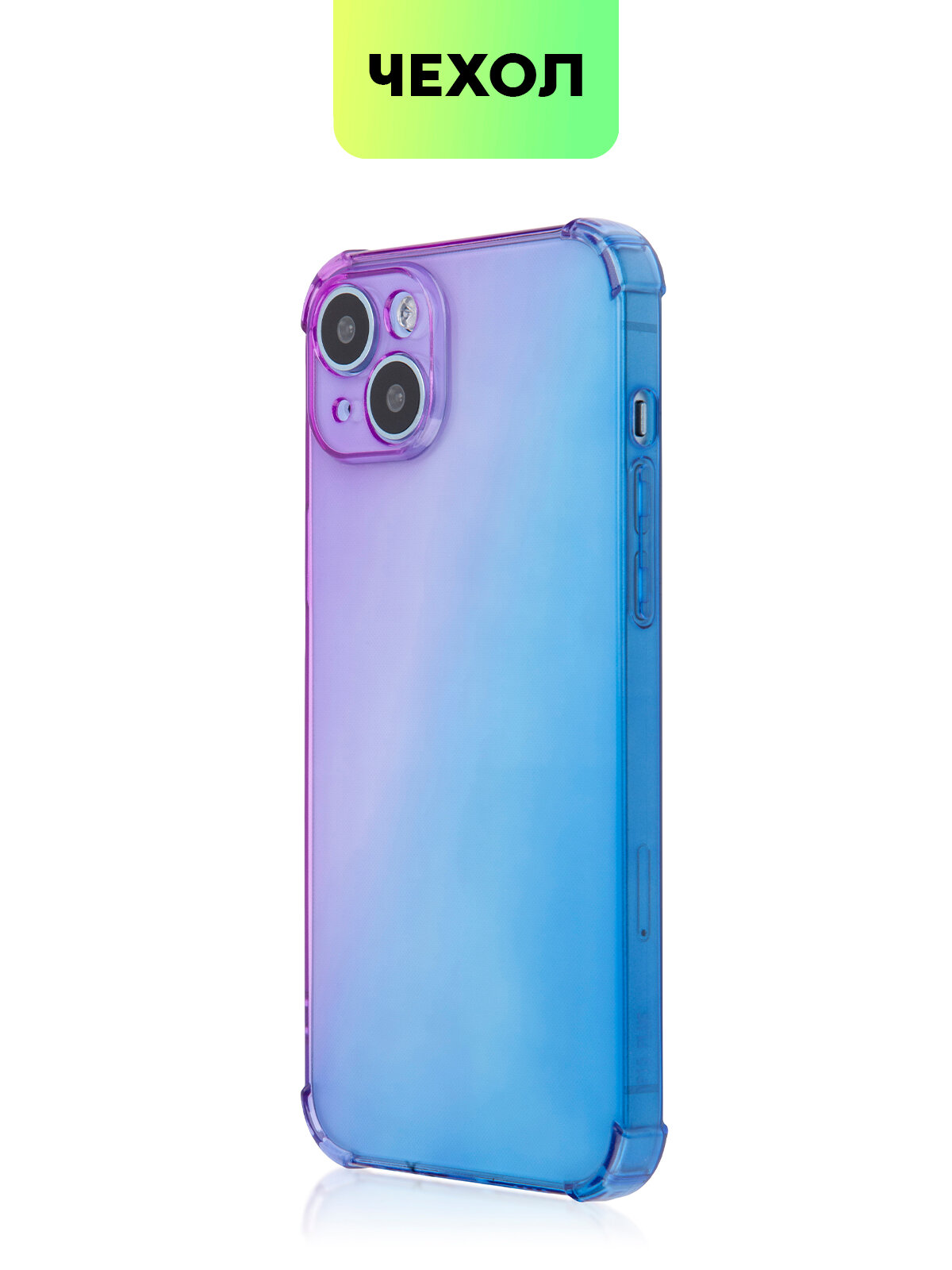Купить Чехол для Apple iPhone 15 Plus (Эпл Айфон 15 Плюс) противоударный силиконовый, усиленный, защитой камер, чехол BROSCORP прозрачный фиолетово-синий