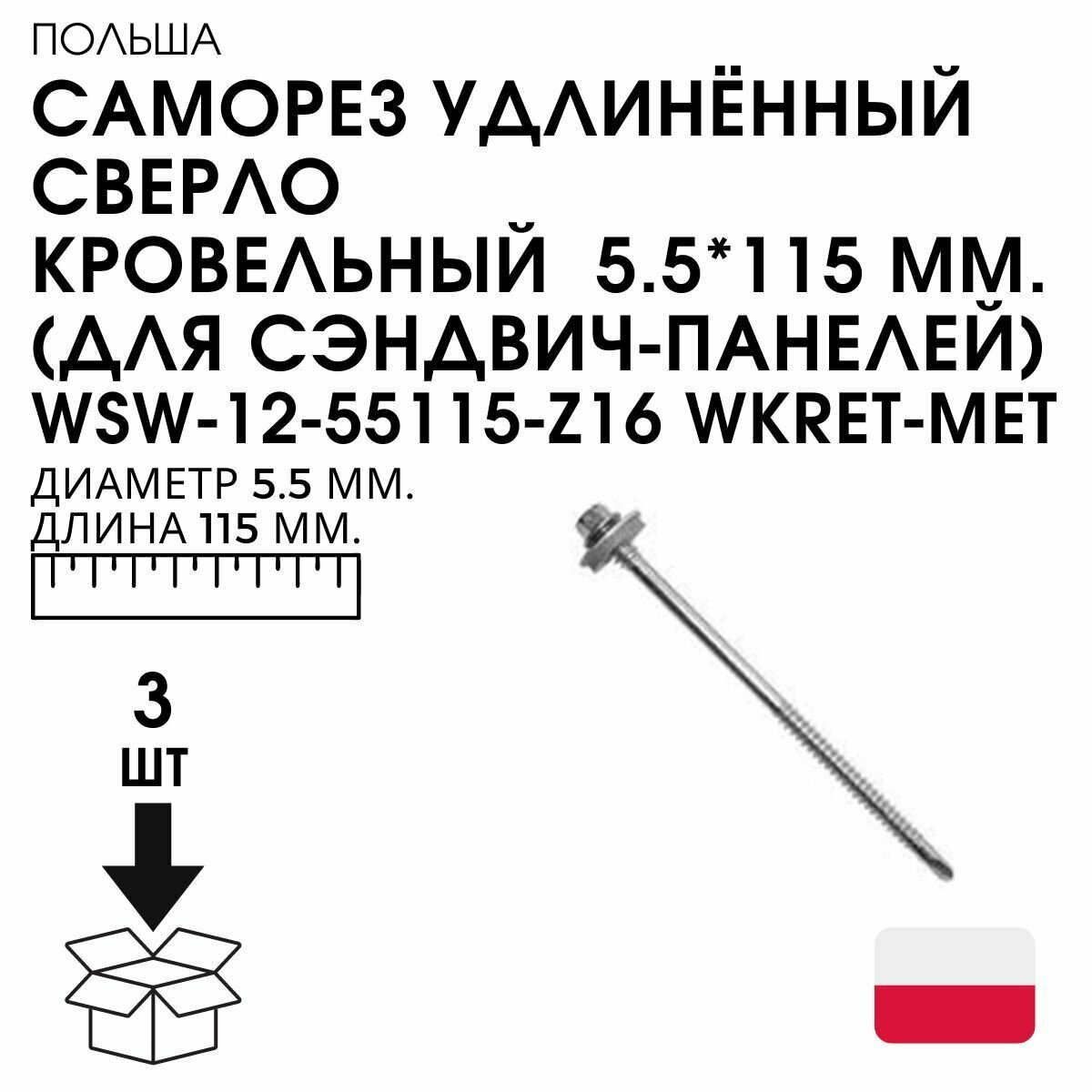 Саморез Кровельный Удлинённый Сверло 5.5*115 ММ. 3 ШТ. (Для Сэндвич-Панелей) WSW-12-55115-Z16 WKRET-MET интересное: