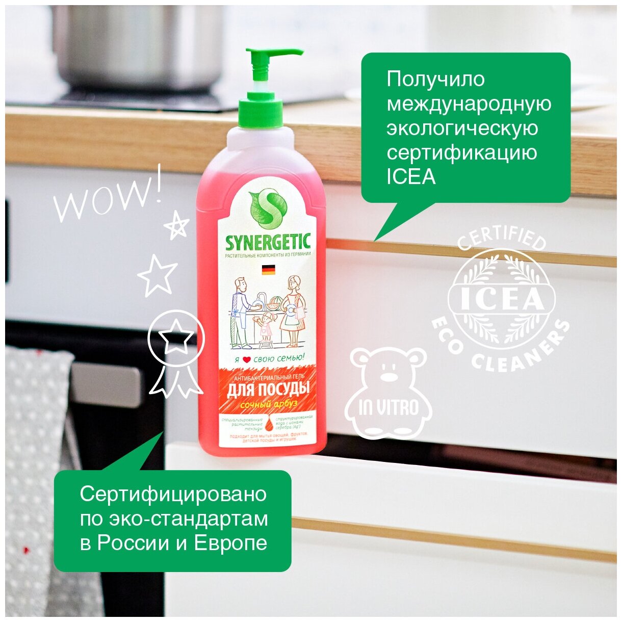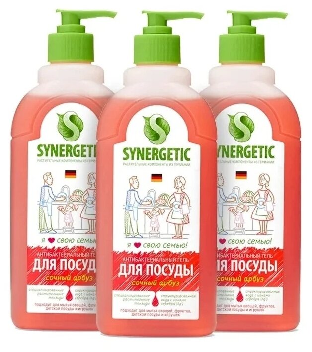 Купить Synergetic Антибактериальный гель для мытья посуды Сочный арбуз, 0.5 л, 3 уп.