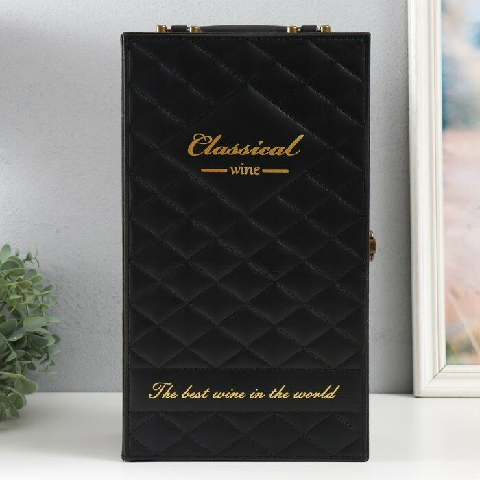 Шкатулка дерево, кожзам для 2 бутылок "Стёганная чёрная" 4 предмета 34,5х19,5х12 см, "Hidde", цвет чёрный интересное: