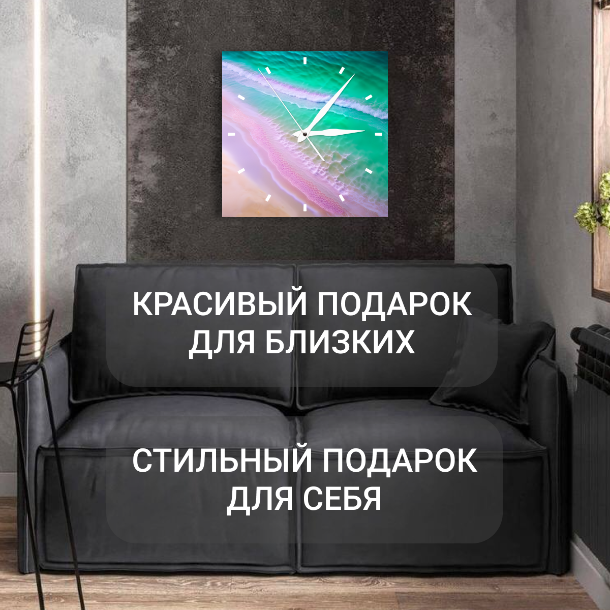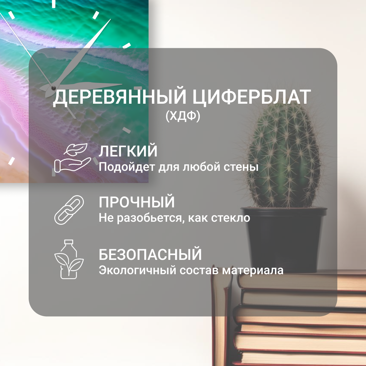 Деревянные настенные часы, 28см х 28см/ Большие кварцевые бесшумные интерьерные часы с принтом/ Часы-картина на стену/, море 2 интересное: