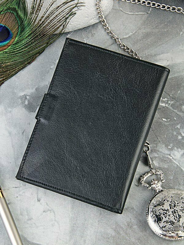Обложка на документы кошелек, натуральная кожа, отделения для карт и монет, черный интересное: