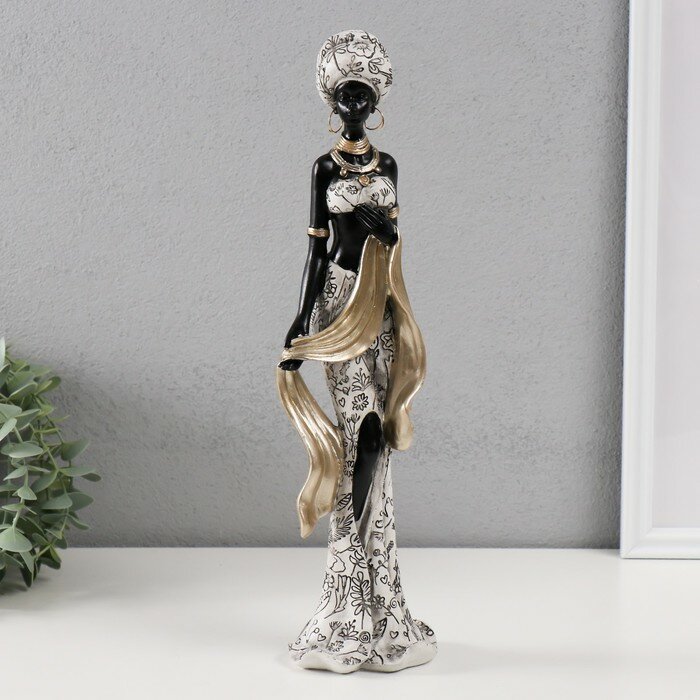 Сувенир полистоун "Африканка в белом одеянии с цветами, с палантином" 10,5х9х36 см, "Hidde", цвет чёрный интересное: