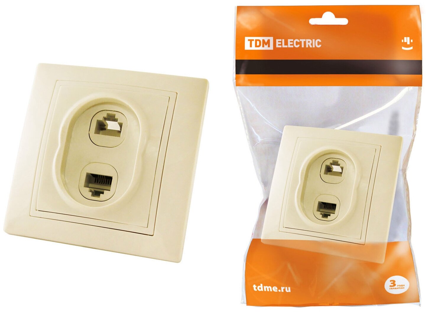 Купить Розетка телефонная RJ11 + компьютерная RJ45 сл. кость "Таймыр", TDM SQ1814-0123 (10 шт.)