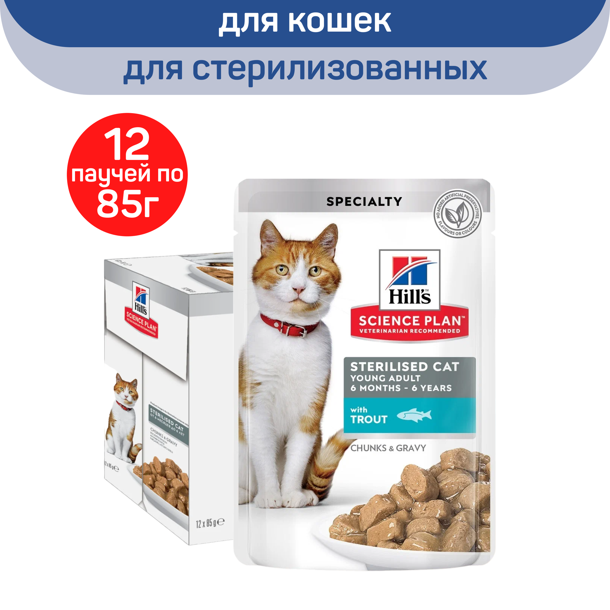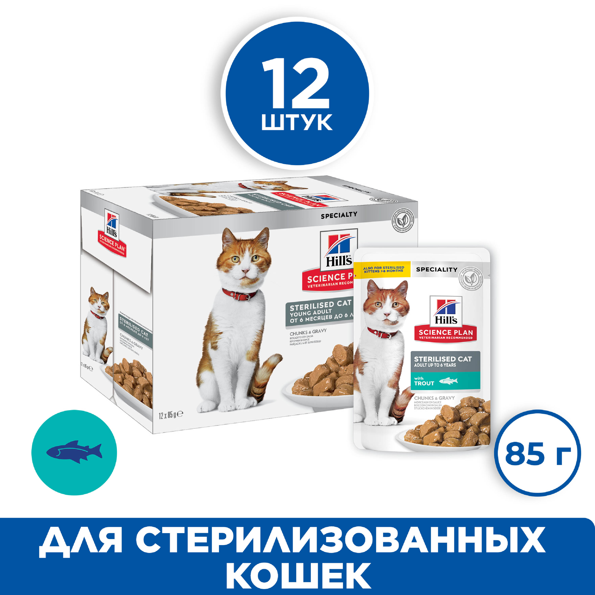 Влажный корм Hill's Science Plan для молодых стерилизованных кошек и кастрированных котов, пауч с форелью в соусе, 85 г х 12 шт.
