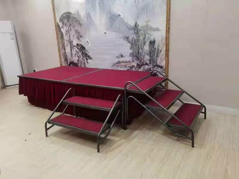 Мобильная складная сцена (подиум) на колесах (Ширина 1830 × длина 2440 × высота 410 (регулируемая до 610) + лестница для подиума 410 мм + шторка) интересное:
