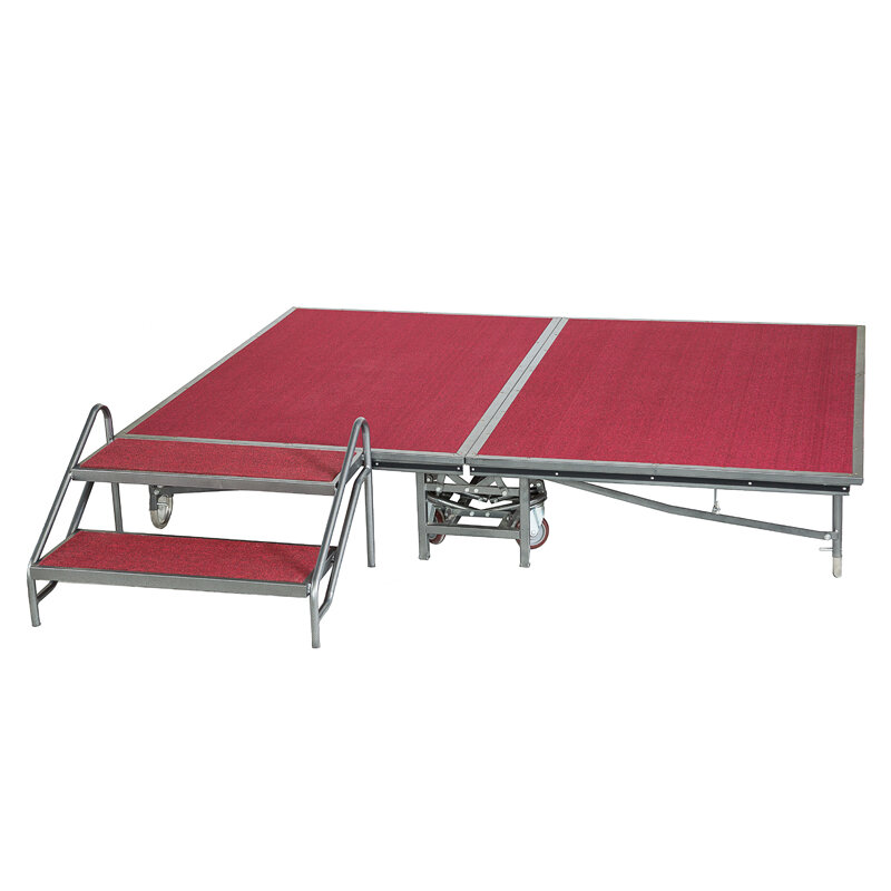Купить Мобильная складная сцена (подиум) на колесах (Ширина 1830 × длина 2440 × высота 410 (регулируемая до 610) + лестница для подиума 410 мм + шторка)