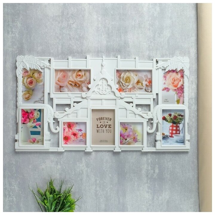 Купить Фоторамка пластик на 9 фото 10х10, 10х15 см "Домик у моря" белая 36,5х67х2 см, "Hidde", цвет белый