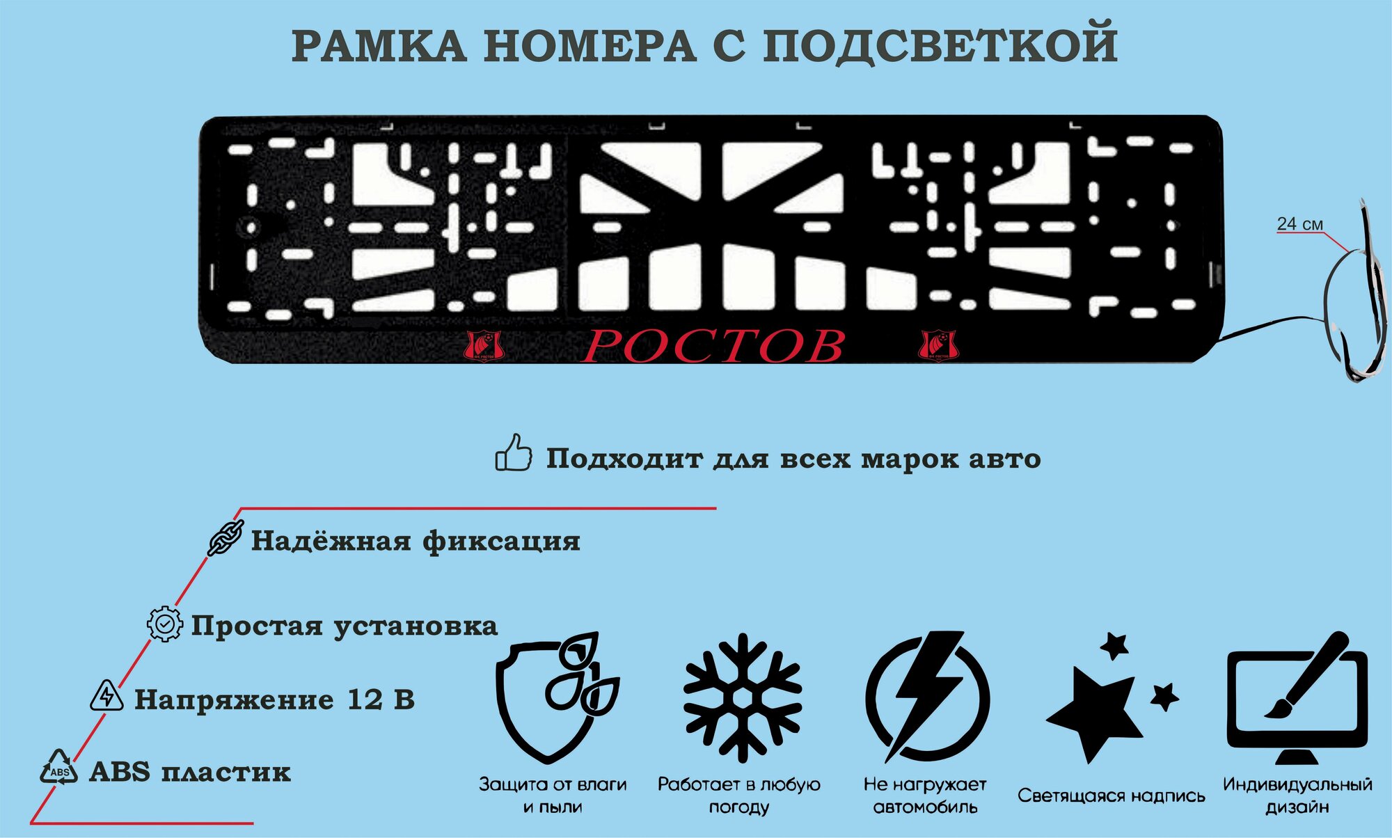 Рамка номера со светодиодной LED подсветкой с логотипом для автомобиля,ростов,тюнинг авто,рамка гос номер, 1 шт, 12 В интересное: