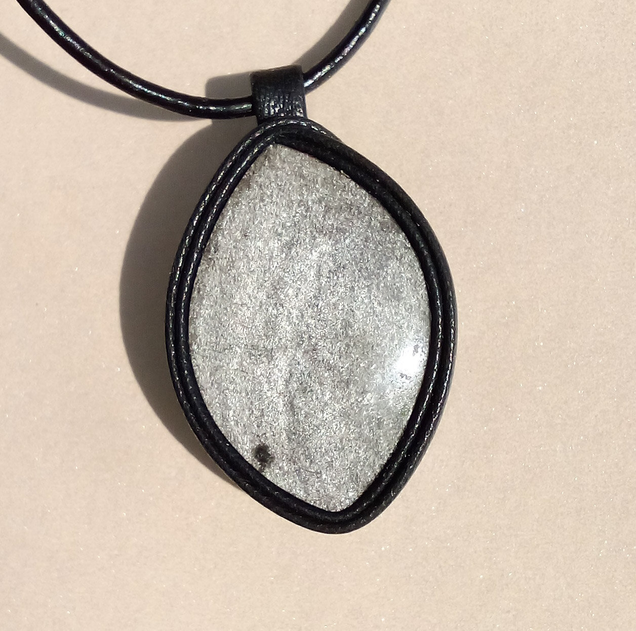 Купить Кулон с натуральным камнем обсидианом серый серебристый черный