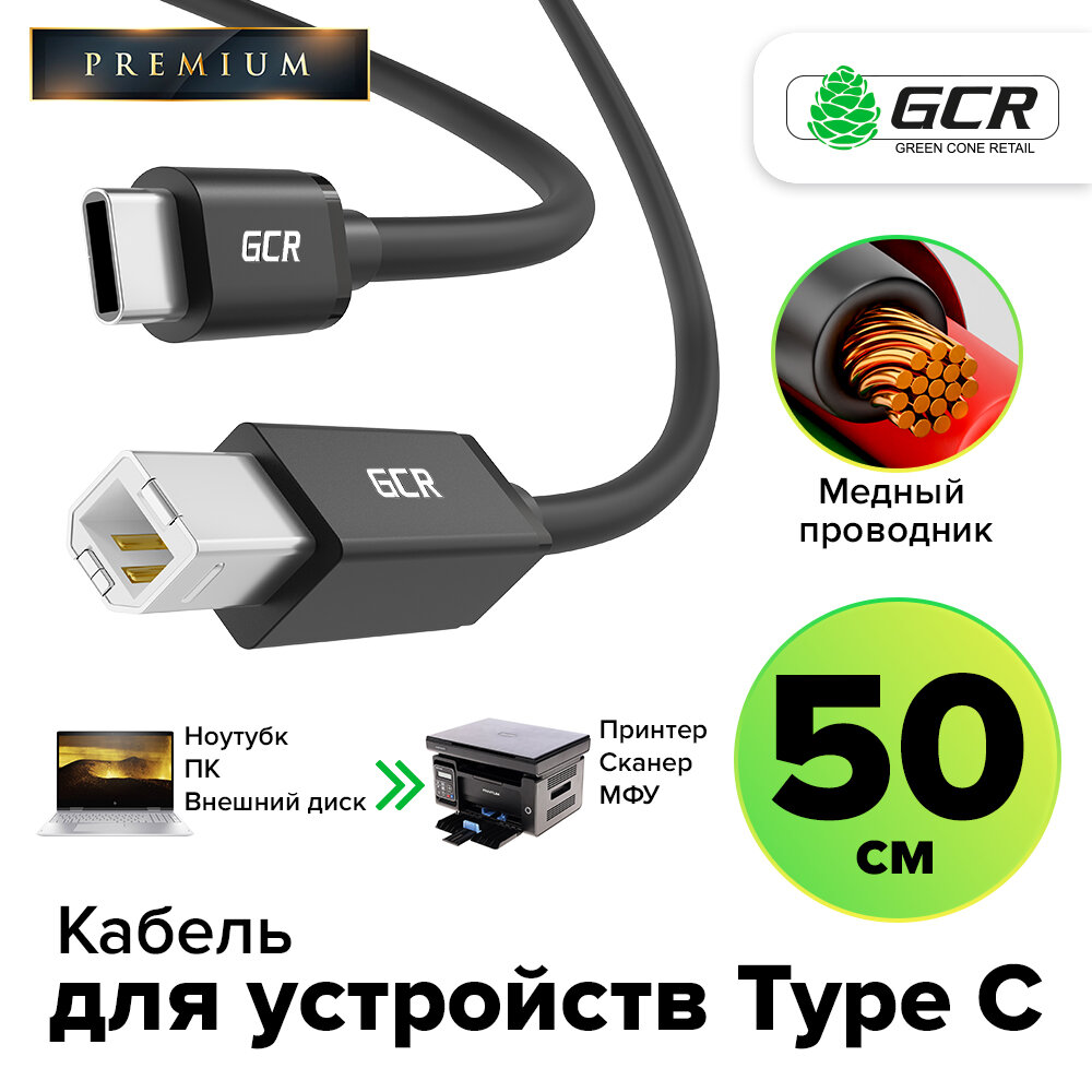 Кабель TypeC / USB 2.0 BM для принтера (GCR-B200) черный 0.5м интересное: