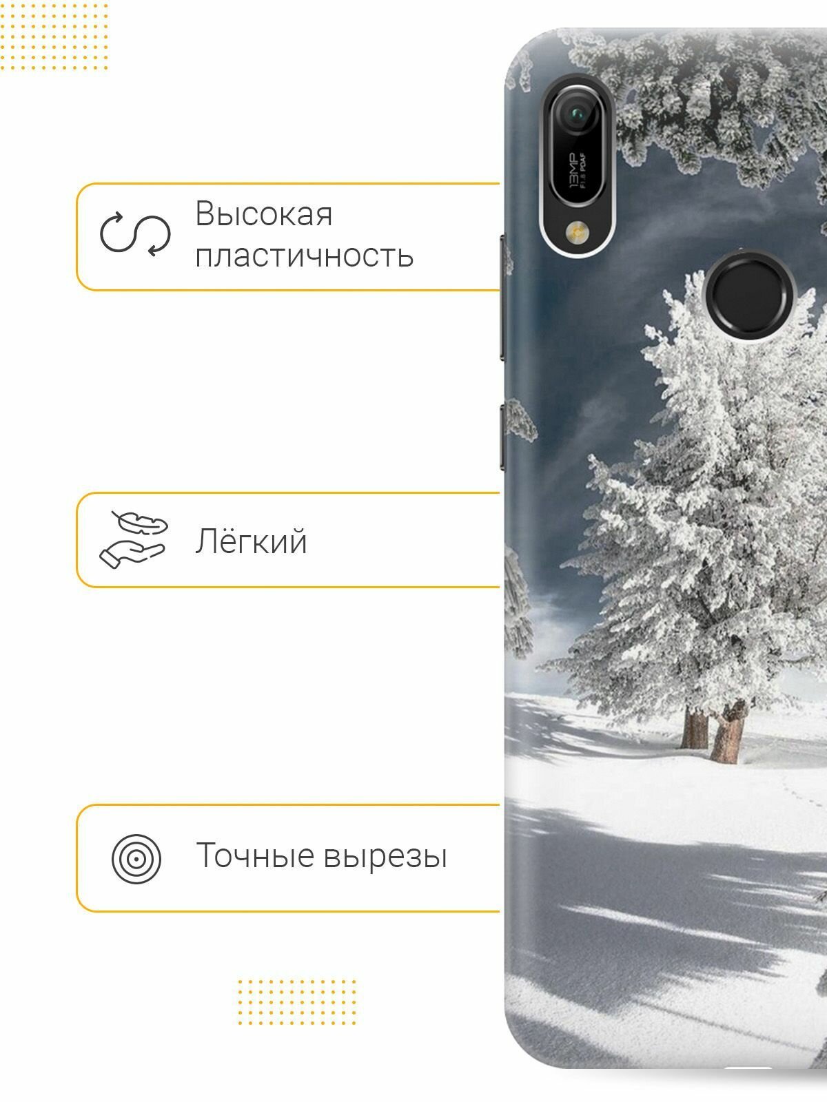 СохранитьСиликоновый чехол на Huawei Y6 (2019) / Y6 Prime (2019) / Honor 8A / 8A Pro / Хонор 8а / Хонор 8а Про / Хуавей У6 2019 / Хуавей У6 Прайм 2019 с принтом "Заснеженные деревья" интересное: