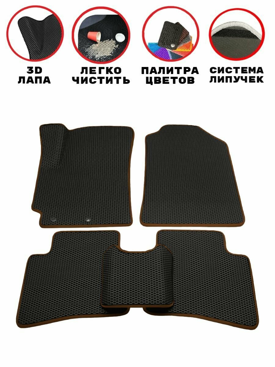 Купить Комплект ковриков EVA/ЭВА для Changan Lamore, Чанган Ламоре, 2023 г., с 3Д лапой, черные соты с коричневым кантом