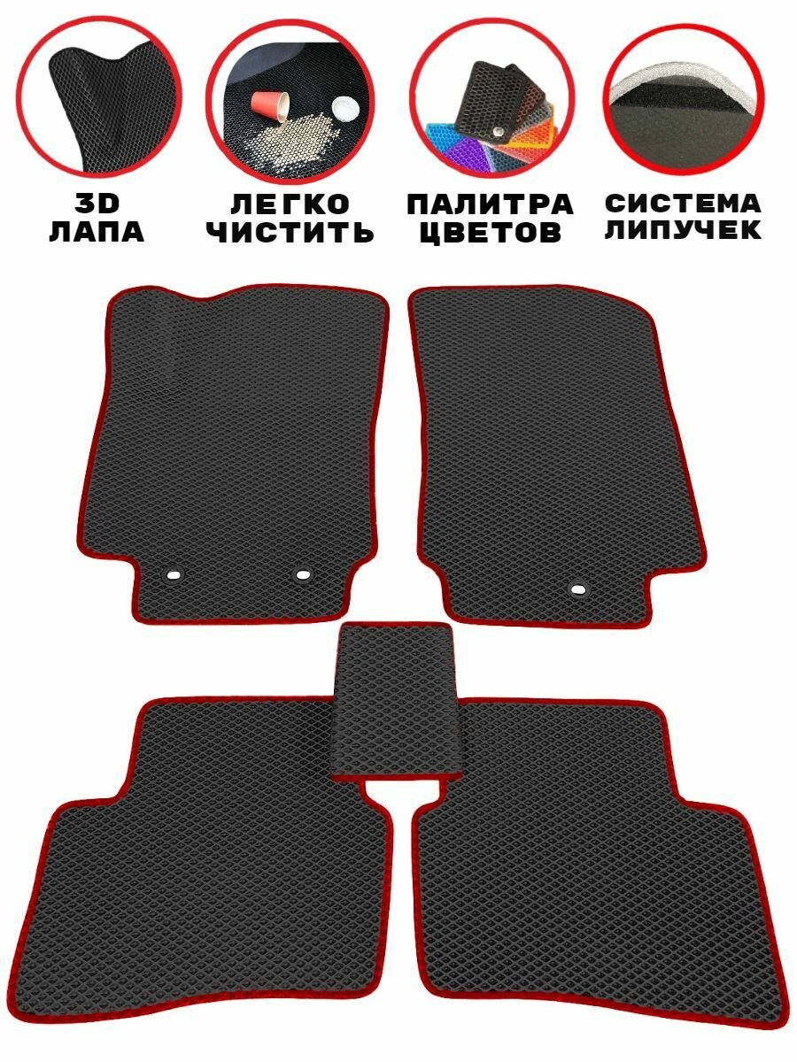 Комплект ковриков EVA/ЭВА для Changan Lamore, Чанган Ламоре, 2023 г., с 3Д лапой, черные соты с красным кантом