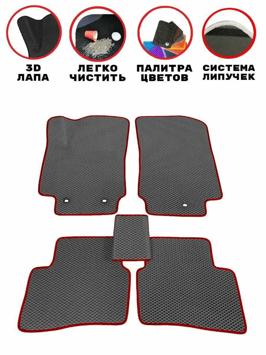 Комплект ковриков EVA/ЭВА для Changan Lamore, Чанган Ламоре, 2023 г., с 3Д лапой, серые соты с красным кантом