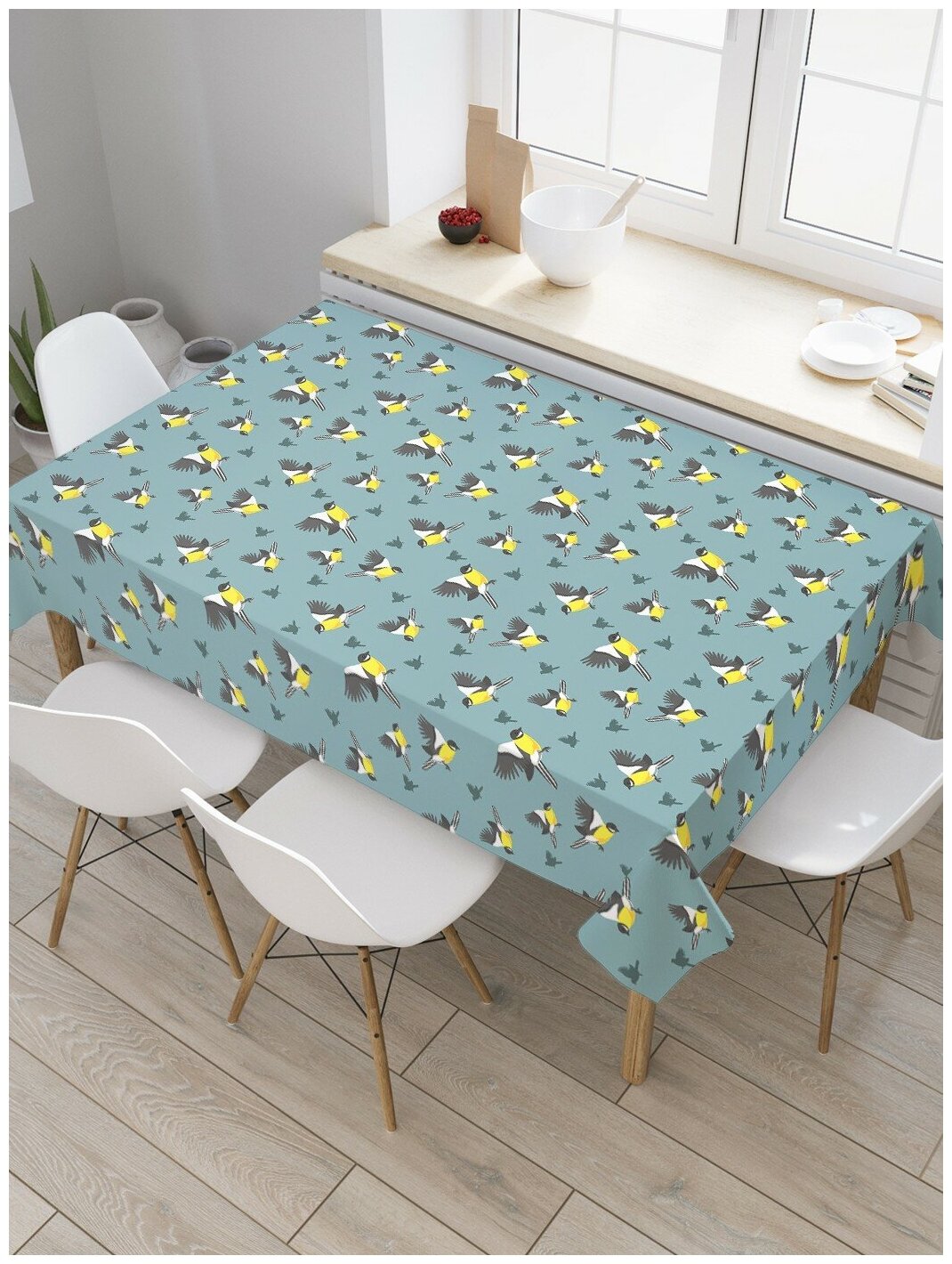 Купить Скатерть прямоугольная JoyArty на кухонный стол "Синички в небе" из оксфорда, 120x145 см