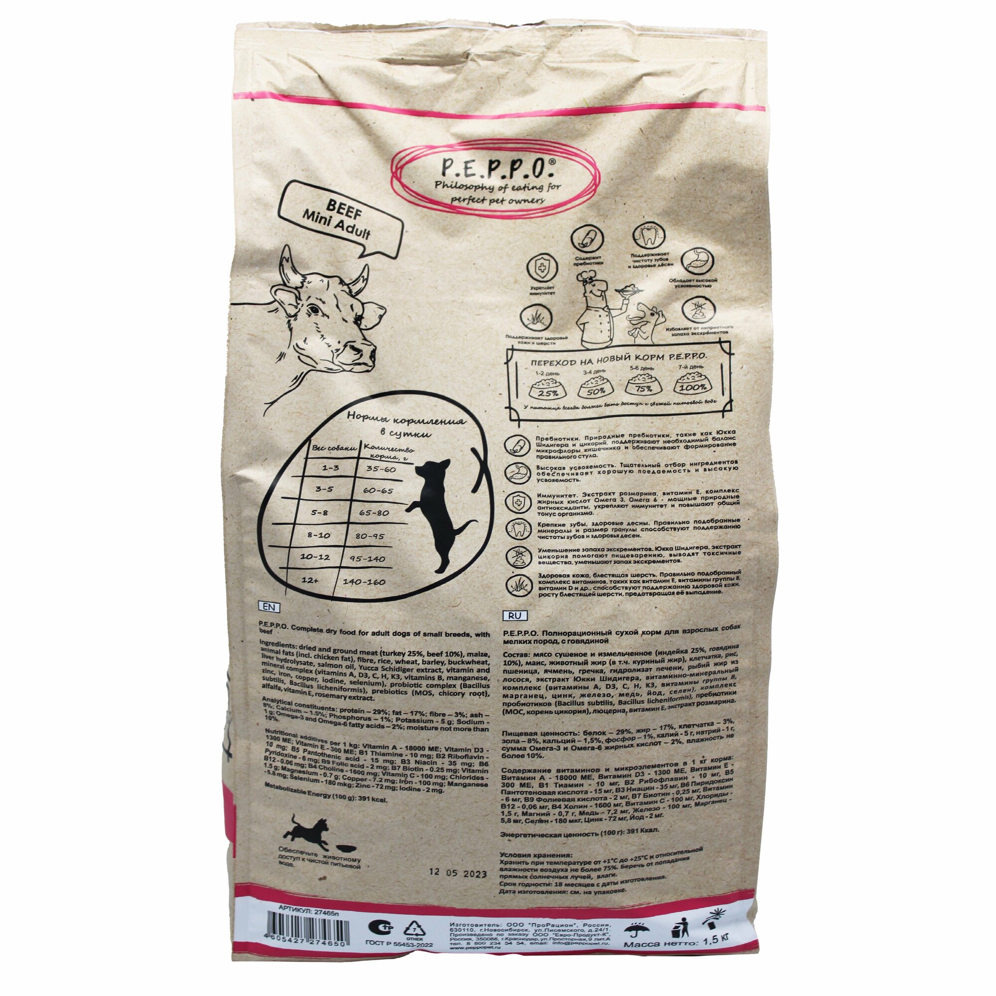 Купить Сухой корм для собак PEPPO Mini Adult Говядина 1,5кг
