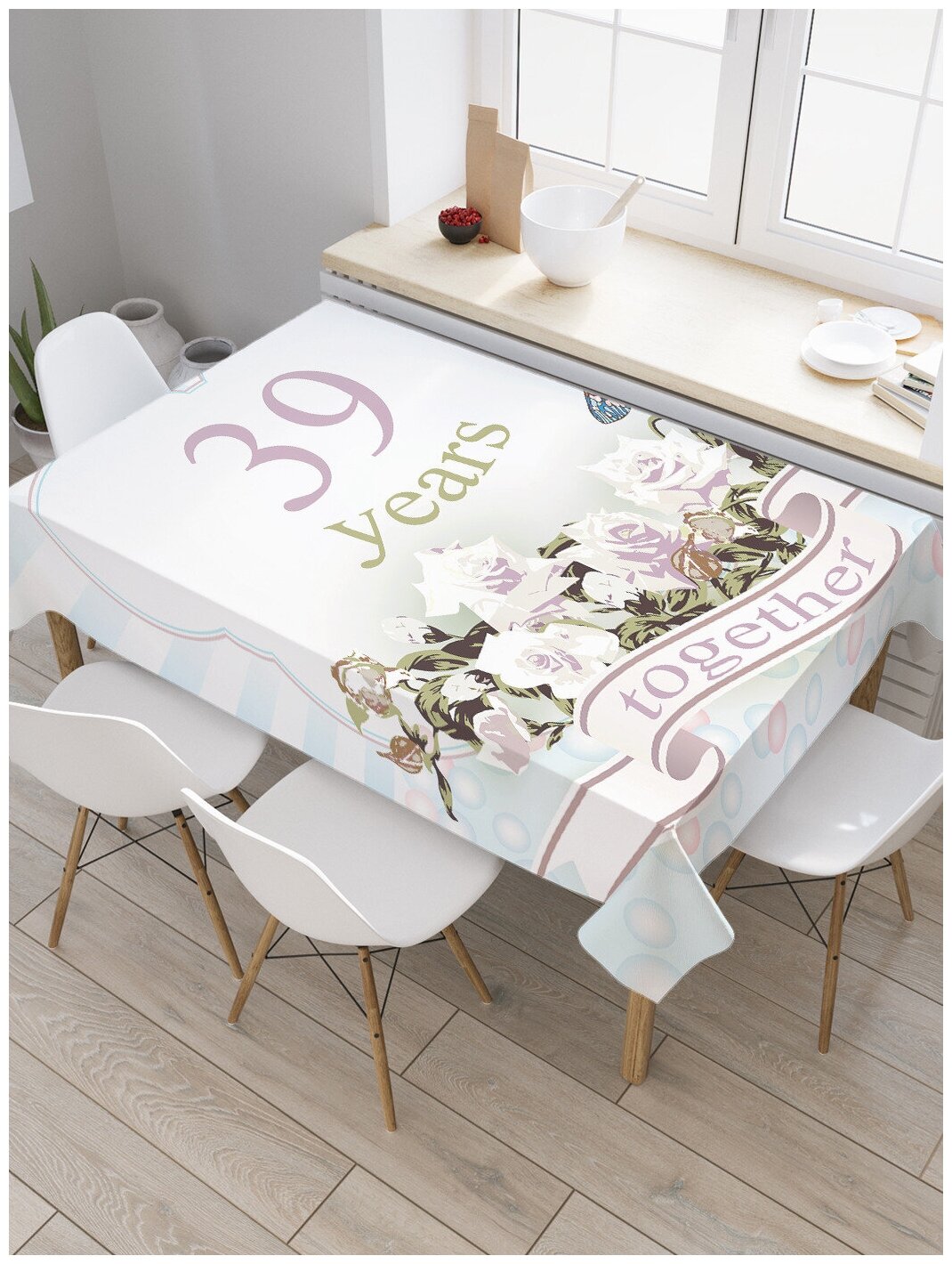 Купить Скатерть прямоугольная JoyArty "39 годоа вместе" из сатена, 120x145 см