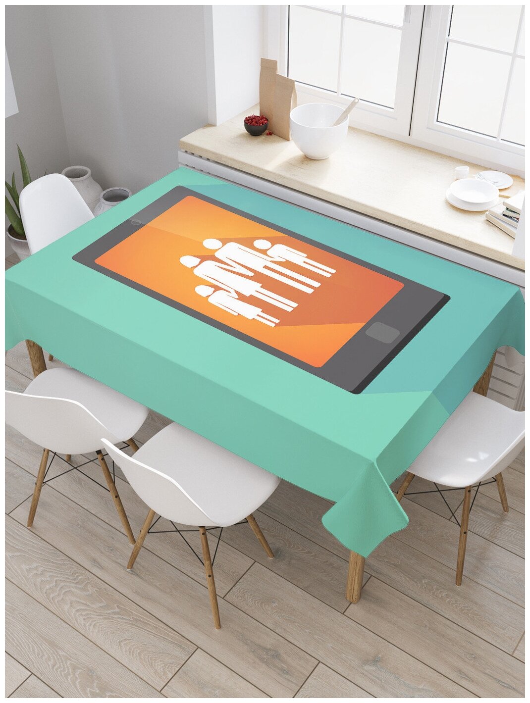 Купить Скатерть прямоугольная JoyArty "Семья в телефоне" из сатена, 180x145 см