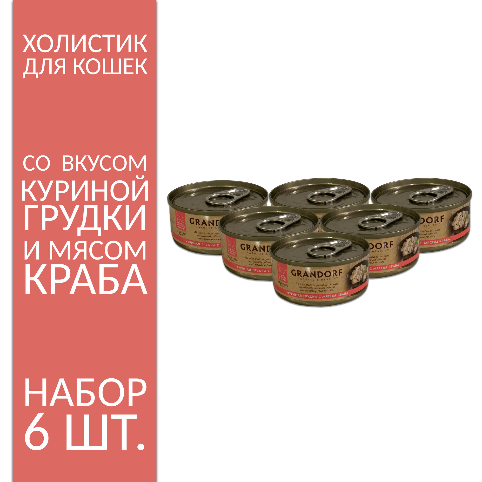 Купить GRANDORF CAT для взрослых кошек с куриной грудкой и мясом краба (70 гр х 6 шт)