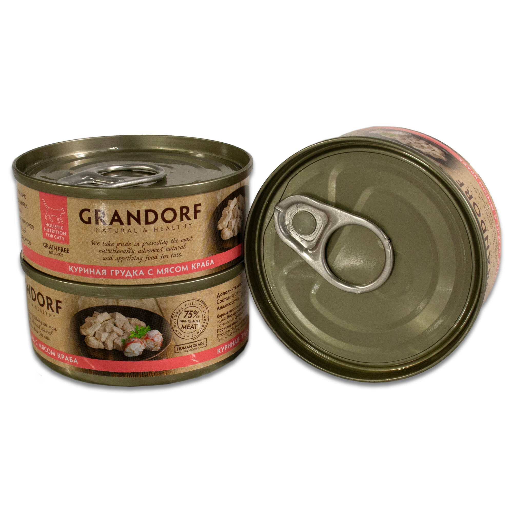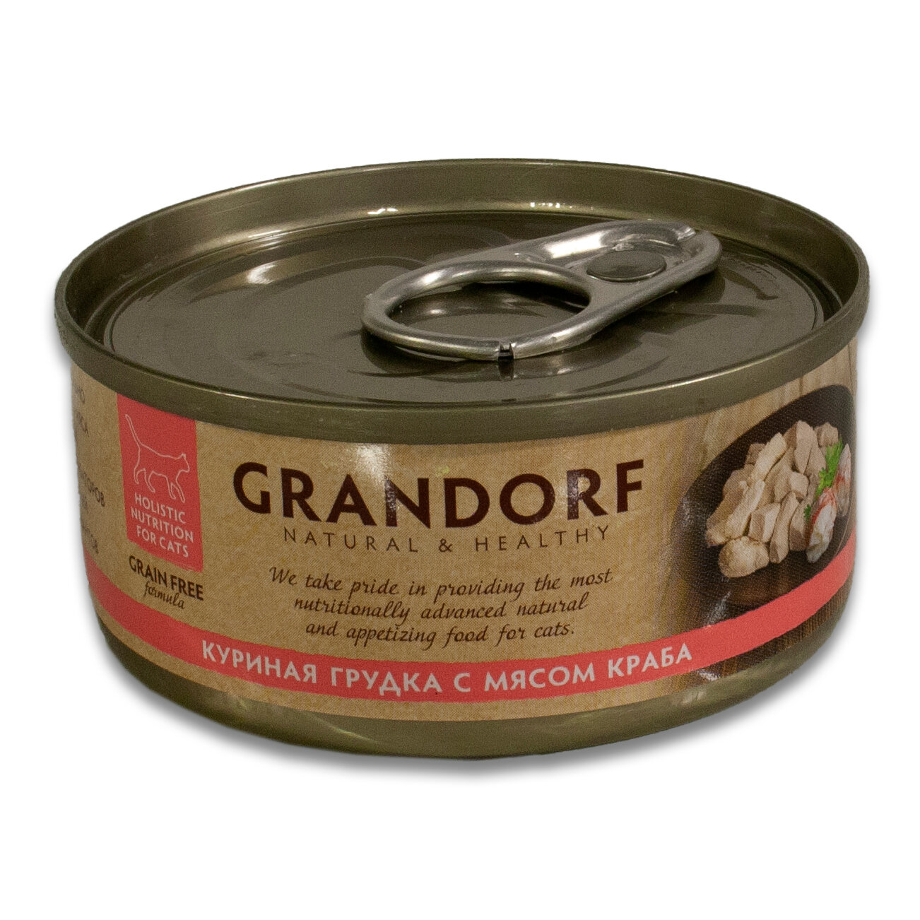 Корм для кошек GRANDORF Куриная грудка с мясом краба банка 70г
