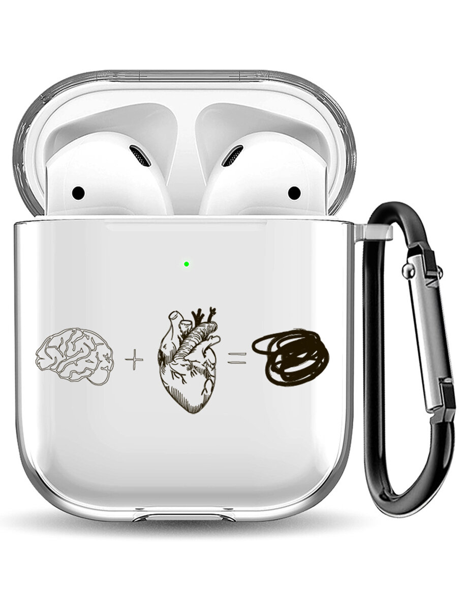 Прозрачный чехол для наушников Apple AirPods 1 / 2 с 3D принтом "Brain Plus Heart"
