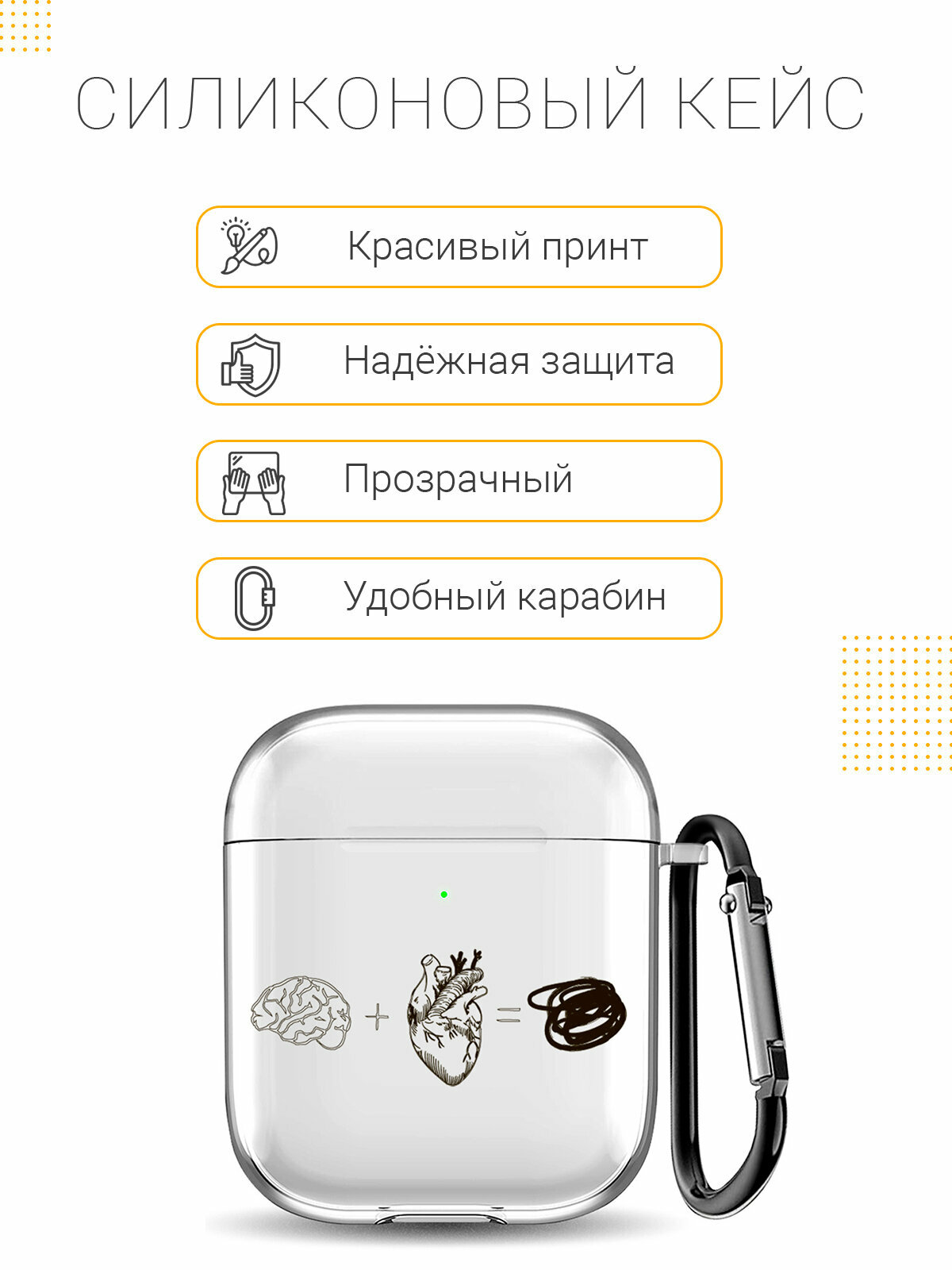 СохранитьУльтратонкий силиконовый чехол для Apple Airpods 1 / 2 с 3D принтом "Brain Plus Heart" интересное:
