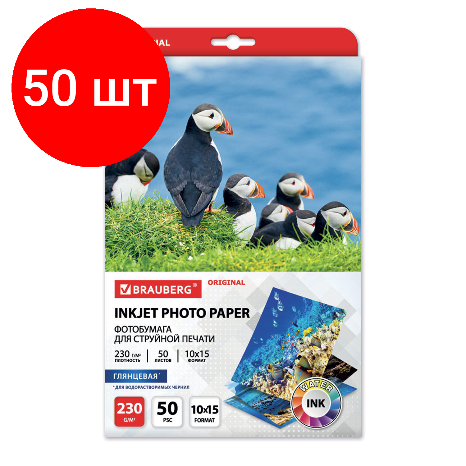 Глянцевая фотобумага BRAUBERG ORIGINAL 10x15 см, 230 г/м2, односторонняя, 50 листов 363972