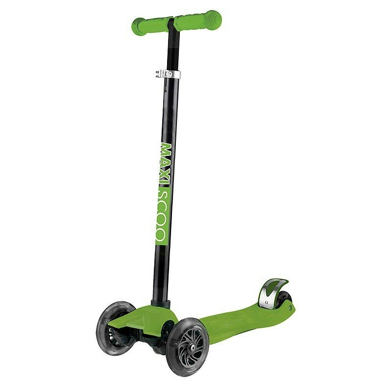 Самокат Maxiscoo Junior трехколесный детский со светящимися колесами, зеленый