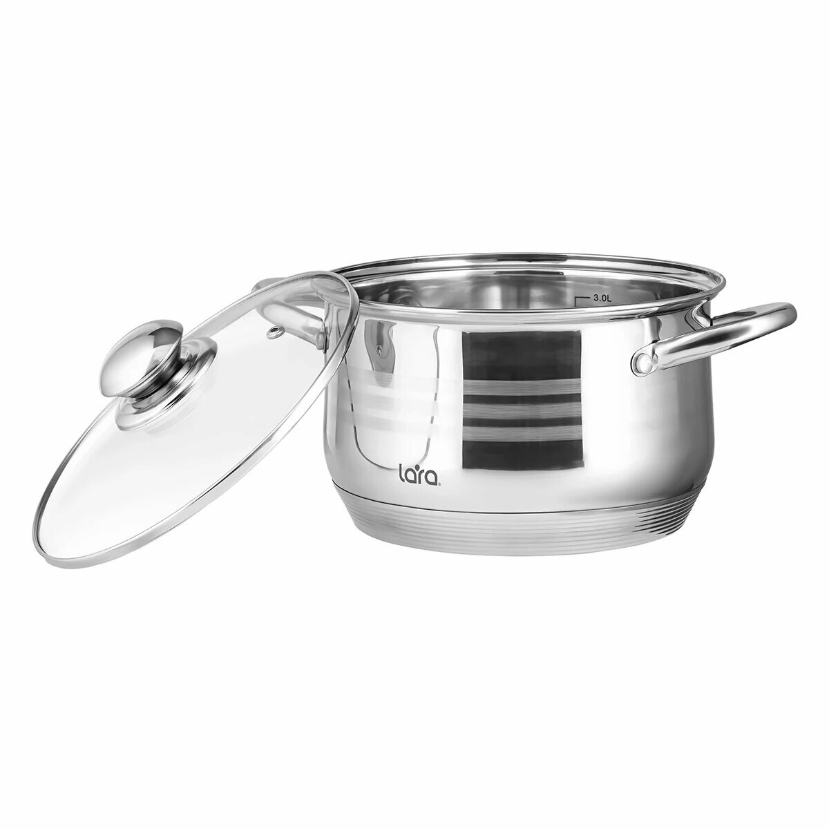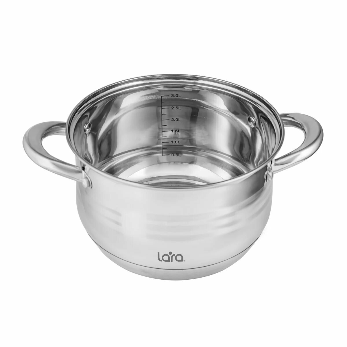 Кастрюля LARA LR02-581, 2.9л, с крышкой, серебристый