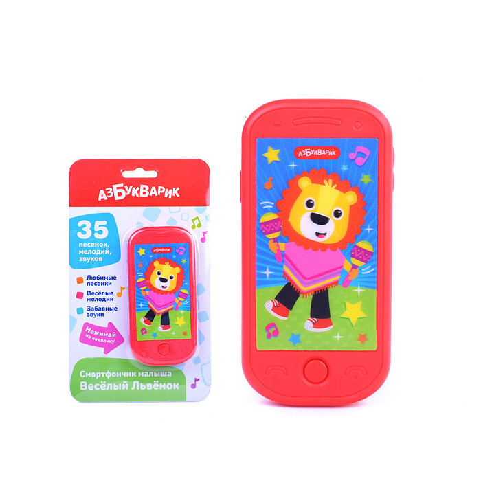 Развивающая игрушка Азбукварик Мини-смартфончик Львёнок, красный