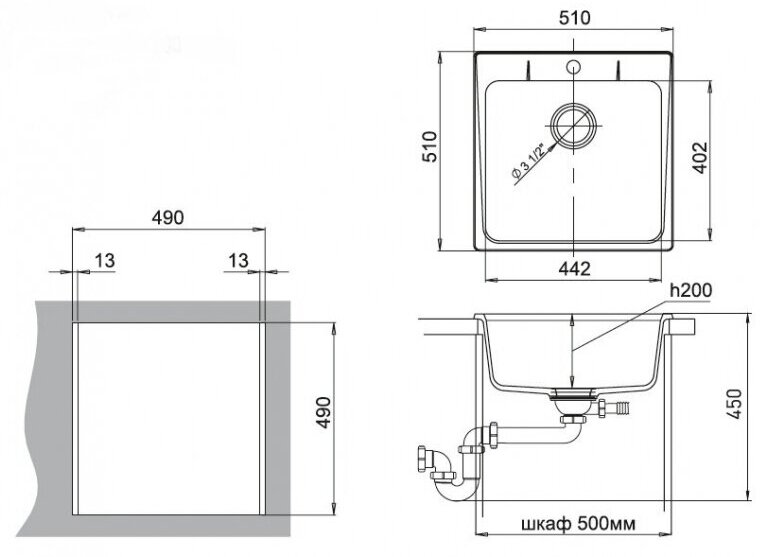 | Глубина мойки | 51 см |