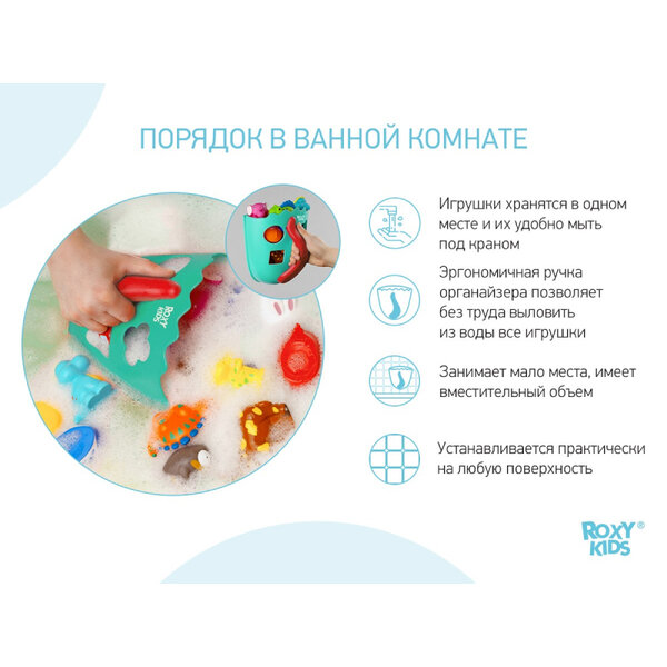 Органайзер-сортер ROXY KIDS Roxy-kids для игрушек в ванную, мятный, RTH-001M
