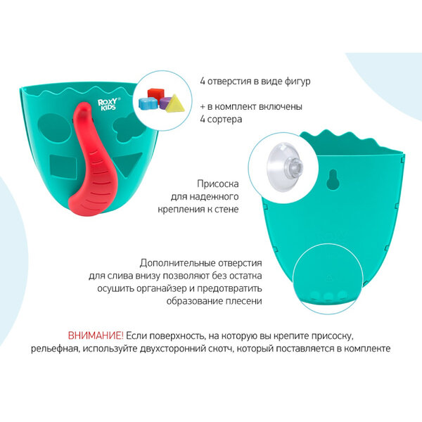 ROXY-KIDS Органайзер-сортер DINO для игрушек и банных принадлежностей. Цвет мятный.