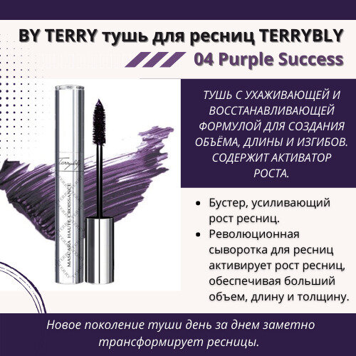 Ниже Вы можете прочитать отзывы на Тушь для ресниц 4 Purple Success By Terry Mascara Terrybly, ознакомится с подробными характеристиками, посмотреть интересные обзоры и фотографии на Тушь для ресниц 4 Purple Success By Terry Mascara Terrybly.