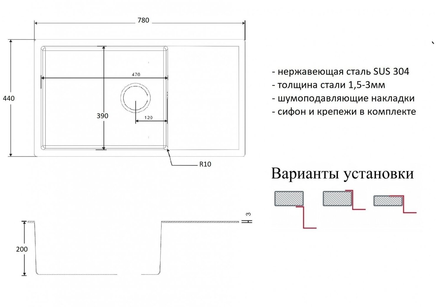 | Установка | врезная |