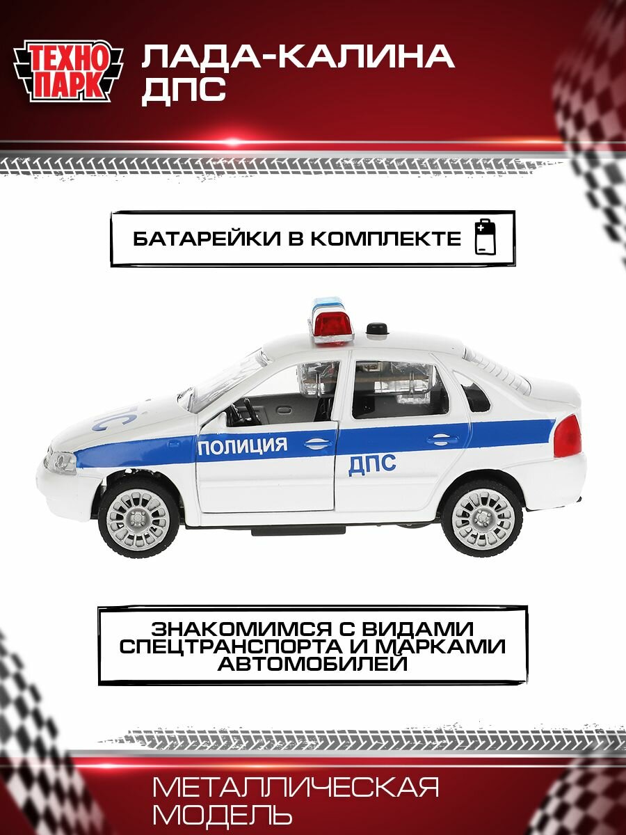 Машина Технопарк металлическая, инерционная, Лада Калина ДПС 12,5 см, свет, звук, открываются двери (CT-1049WB-10)