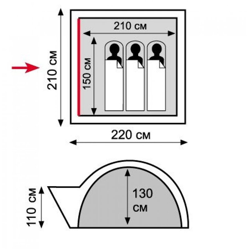 | Ширина внутренней палатки | 210 см |