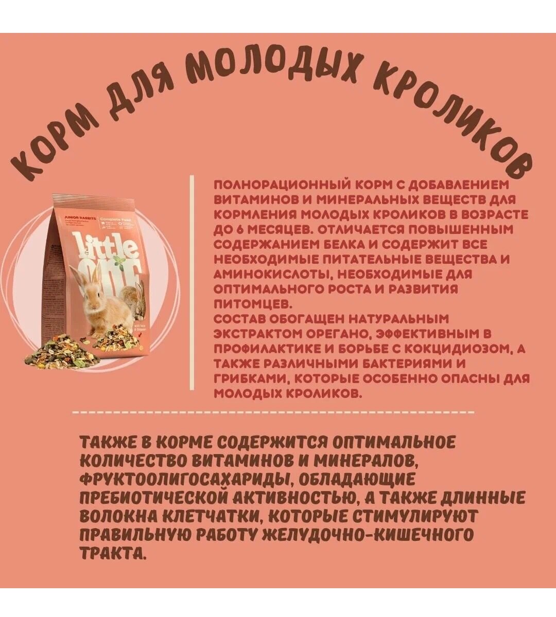 Little one Корм для грызунов для молодых кроликов, 900 г