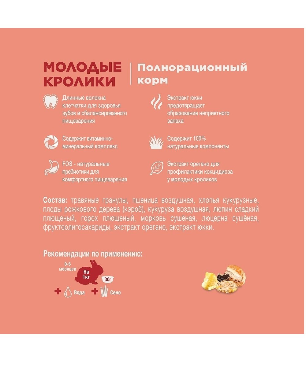 Замечательй состав,приятный запах,объм упаковки Замечательный продукт даже для взррслых кроликов |