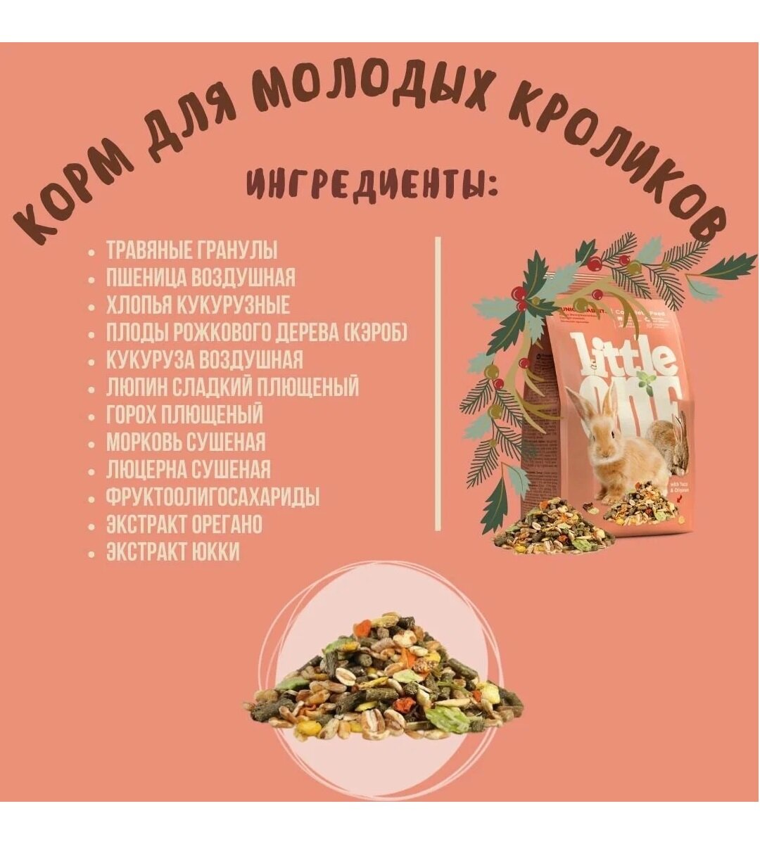 Сухой корм для кроликов молодых / смесь кормовая зерновая для грызунов little one 400г х 2 упаковки