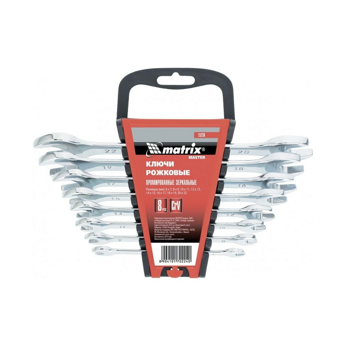 Набор рожковых ключей 6-22 мм, 8 шт. Matrix 15238