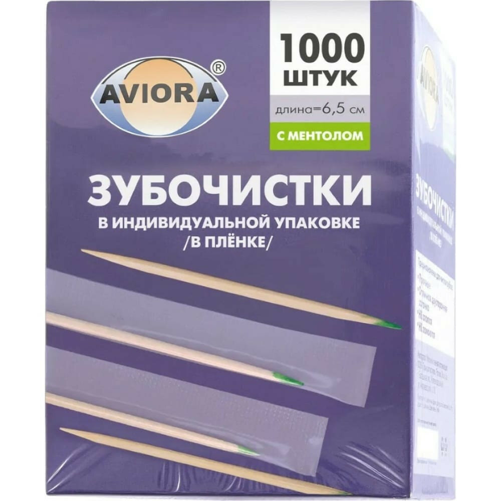 Aviora зубочистки Бамбуковые с ментолом в инд. упаковке (в бумаге), 500 шт. в уп.